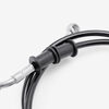 The hose's job is to carry brake fluid from the master cylinder to the caliper on the wheel.