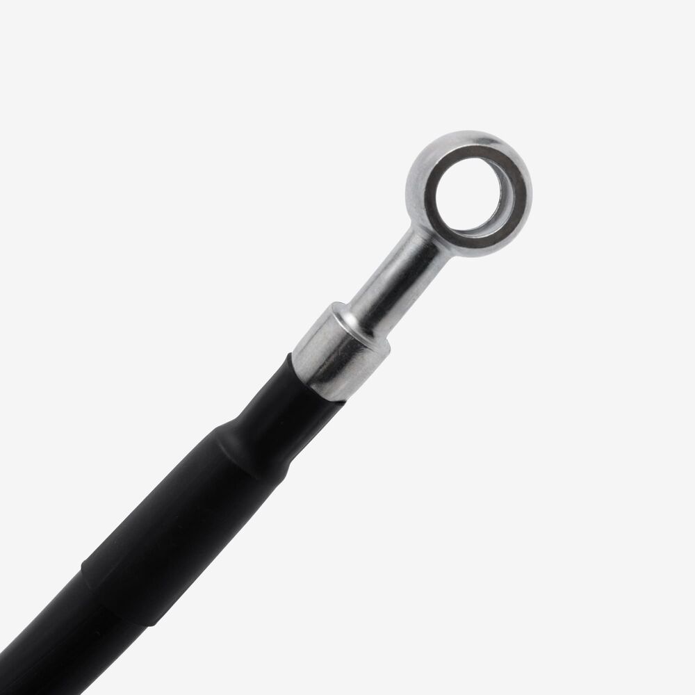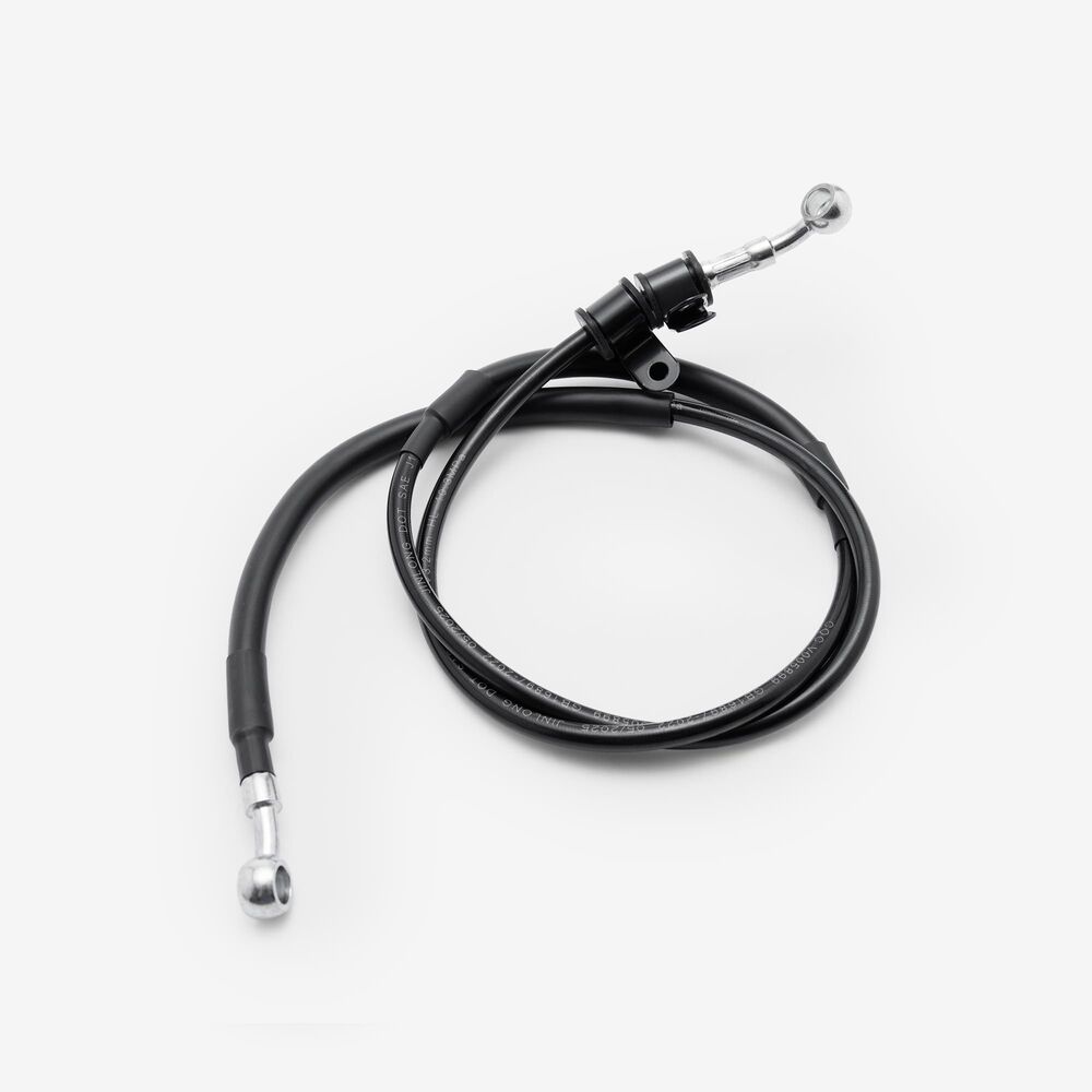 The hose's job is to carry brake fluid from the master cylinder to the caliper on the wheel.