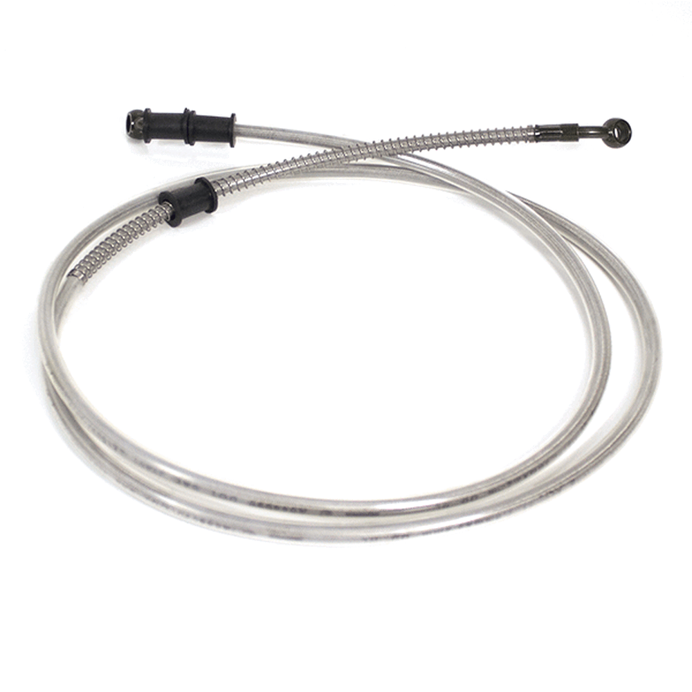 The hose's job is to carry brake fluid from the master cylinder to the caliper on the wheel.