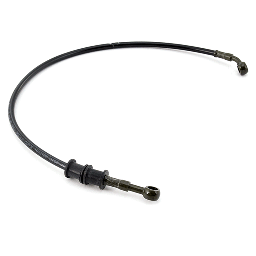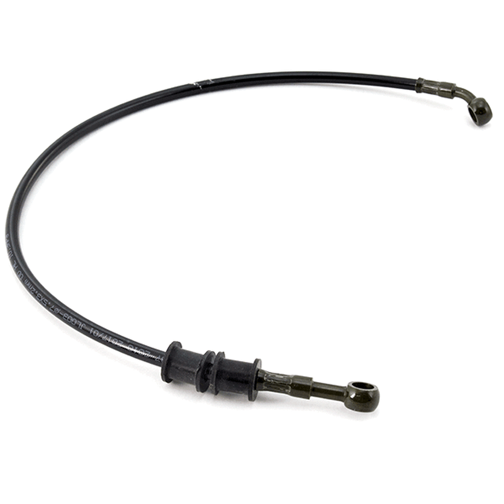 The hose's job is to carry brake fluid from the master cylinder to the caliper on the wheel.
