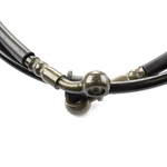 The hose's job is to carry brake fluid from the master cylinder to the caliper on the wheel.