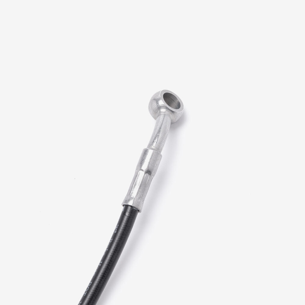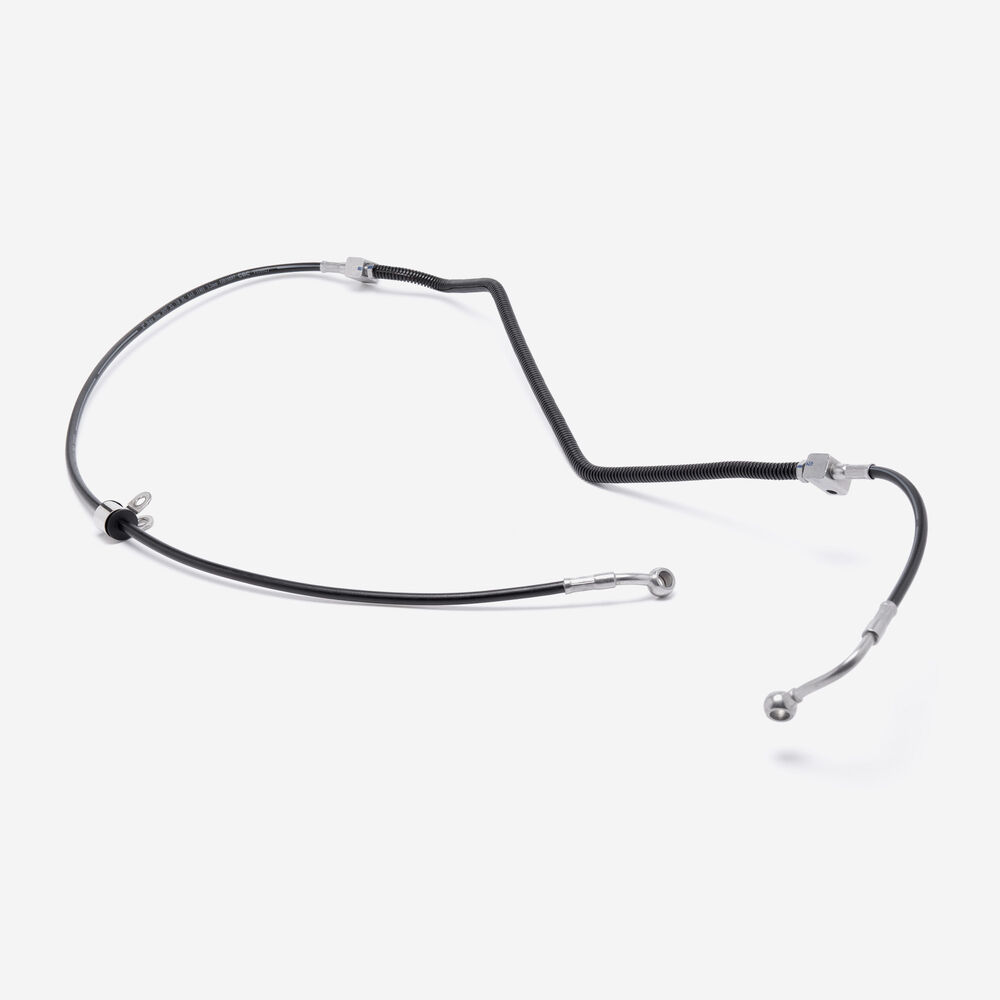 The hose's job is to carry brake fluid from the master cylinder to the caliper on the wheel.