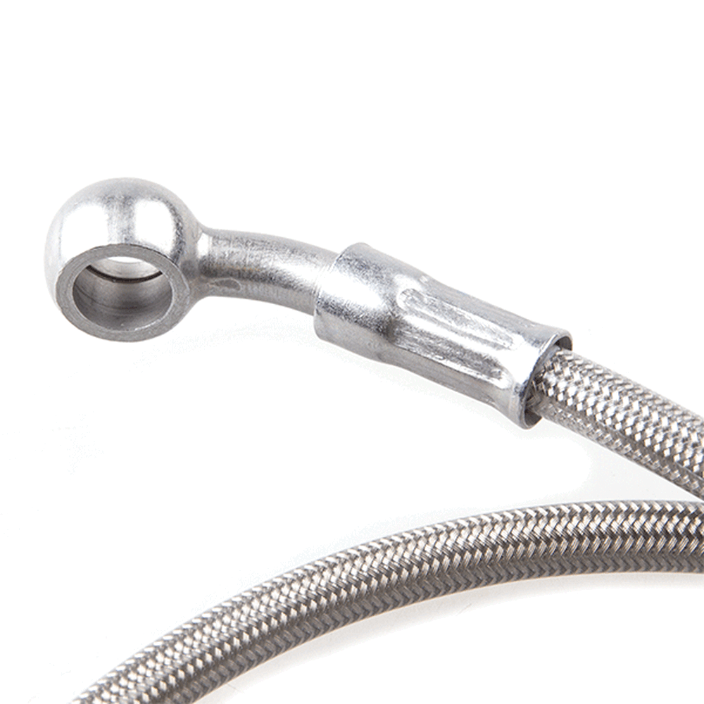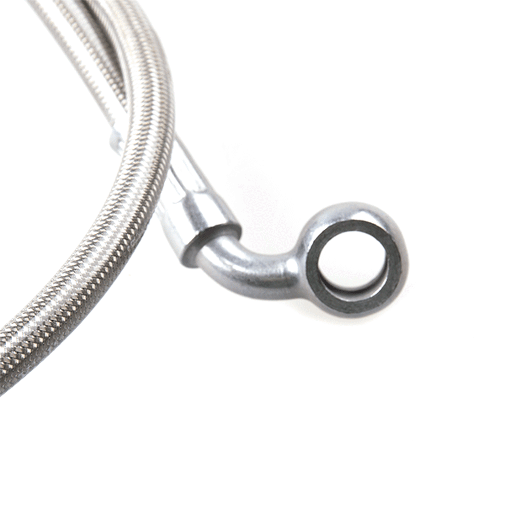 The hose's job is to carry brake fluid from the master cylinder to the caliper on the wheel.