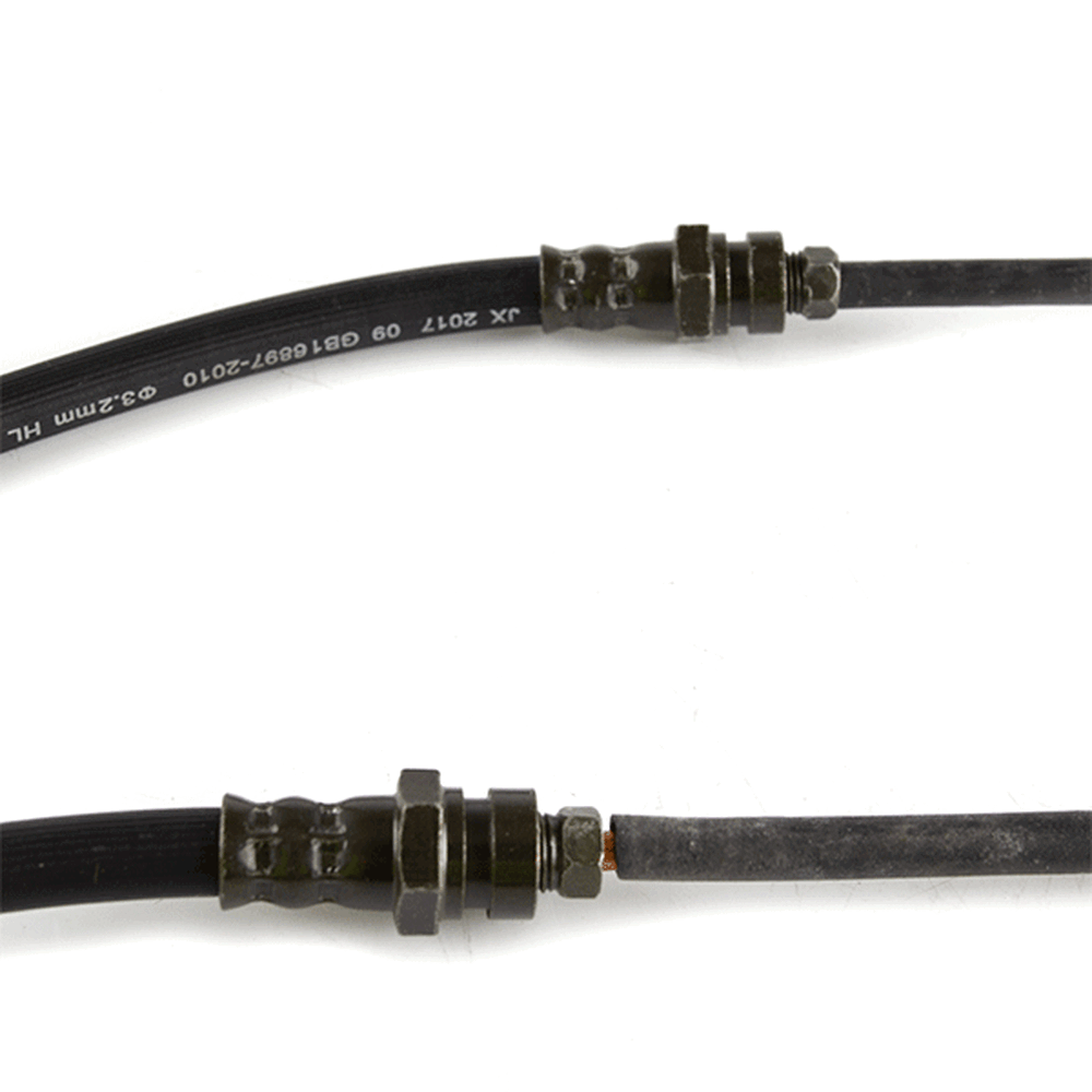 The hose's job is to carry brake fluid from the master cylinder to the caliper on the wheel.