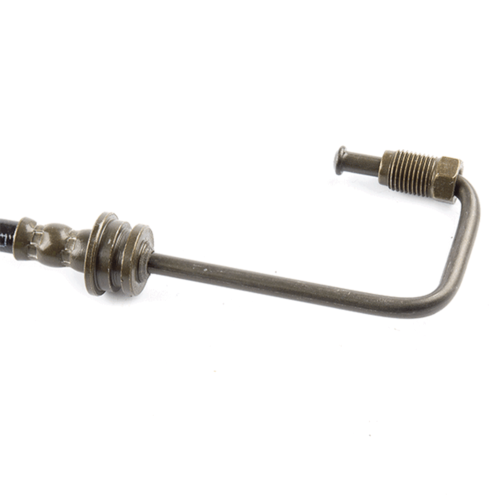 The hose's job is to carry brake fluid from the master cylinder to the caliper on the wheel.