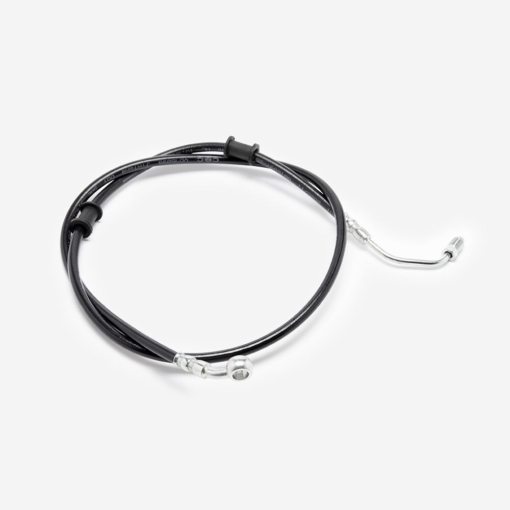 The hose's job is to carry brake fluid from the master cylinder to the caliper on the wheel.