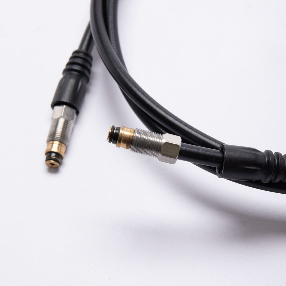 The hose's job is to carry brake fluid from the master cylinder to the caliper on the wheel.