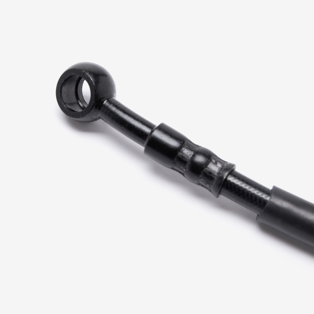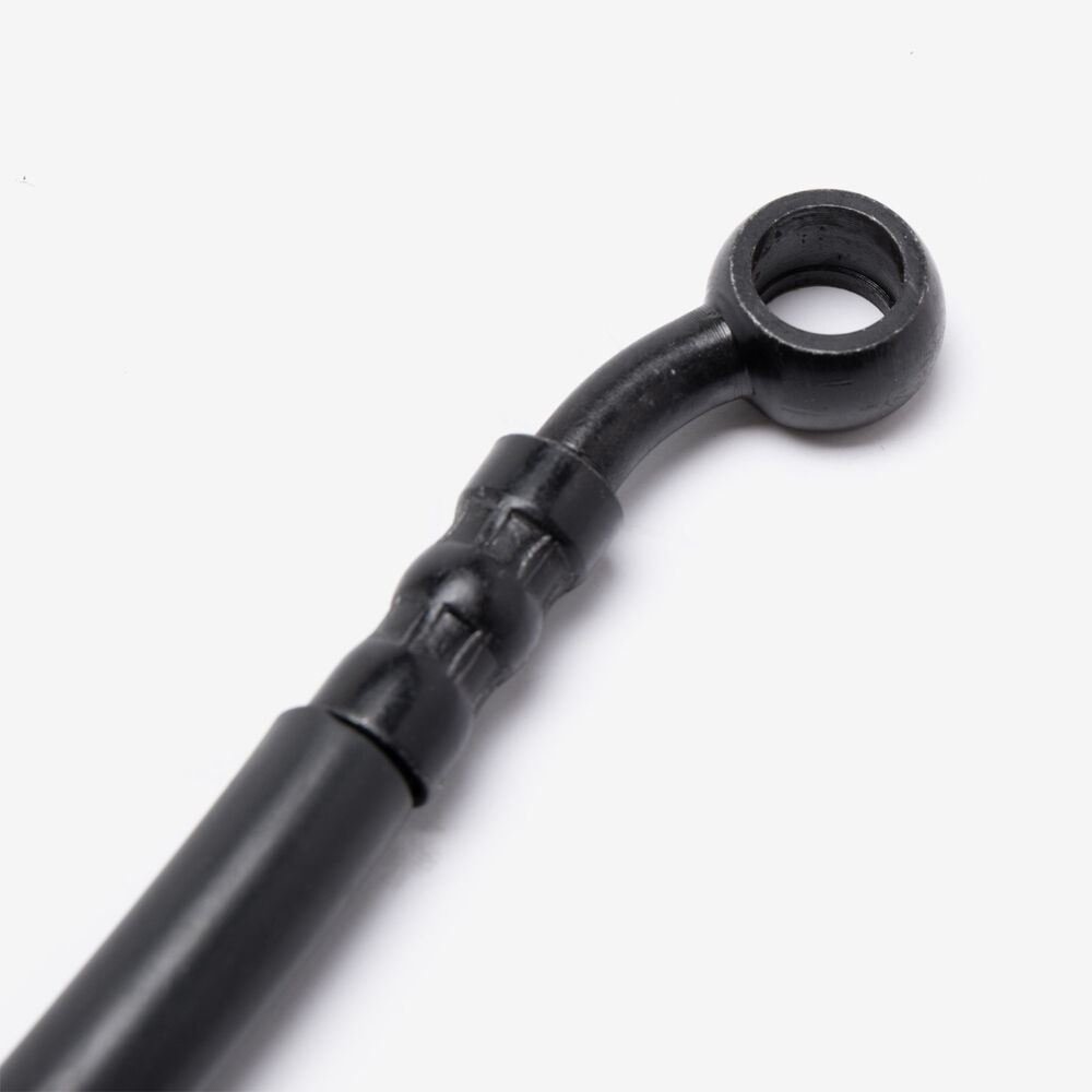 The hose's job is to carry brake fluid from the master cylinder to the caliper on the wheel.