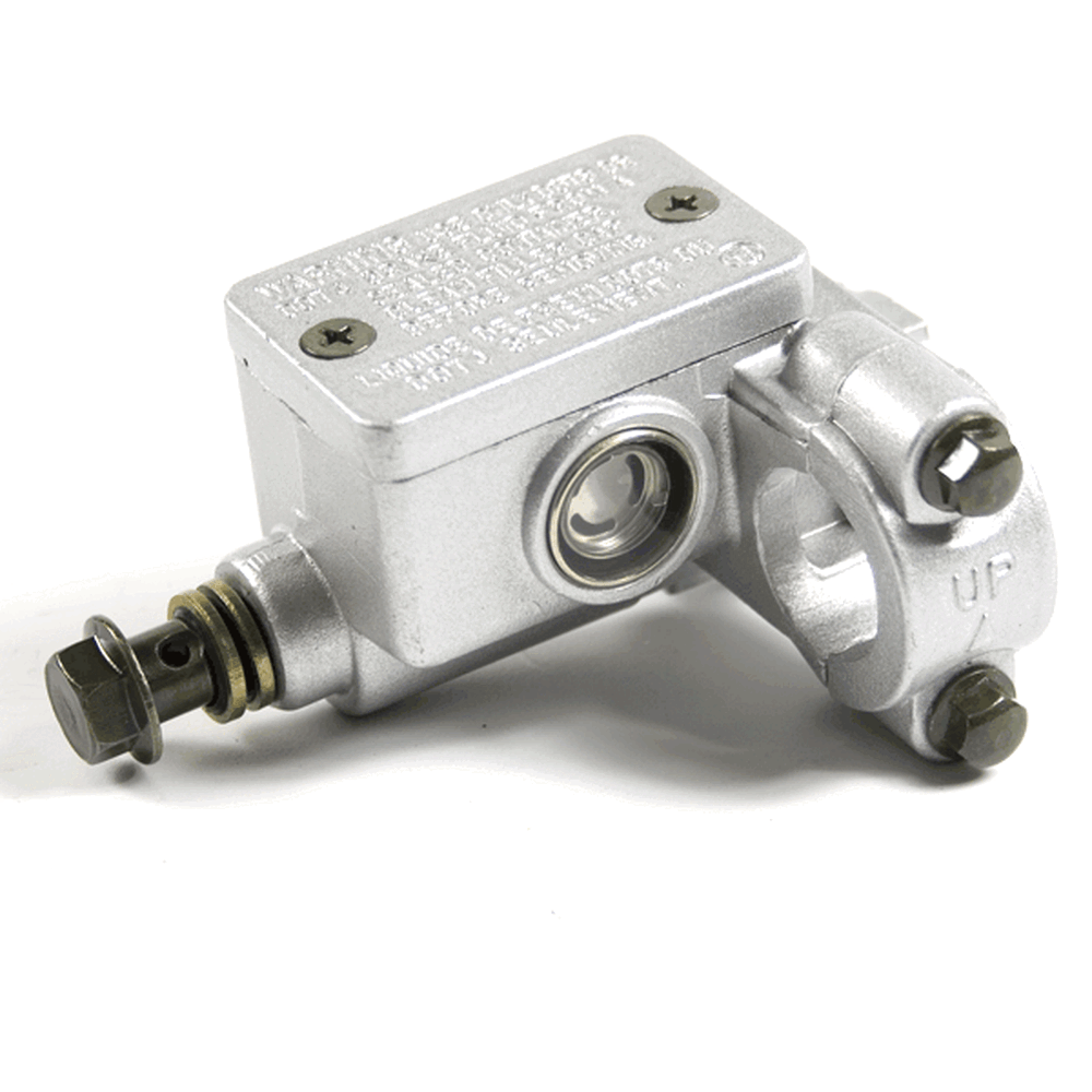 The master cylinders on both the front and the rear of the bike are basically the same – a piston that pushes brake fluid down the lines to the caliper (the slave), in turn forcing the pistons out to press the brake pads against the disc.