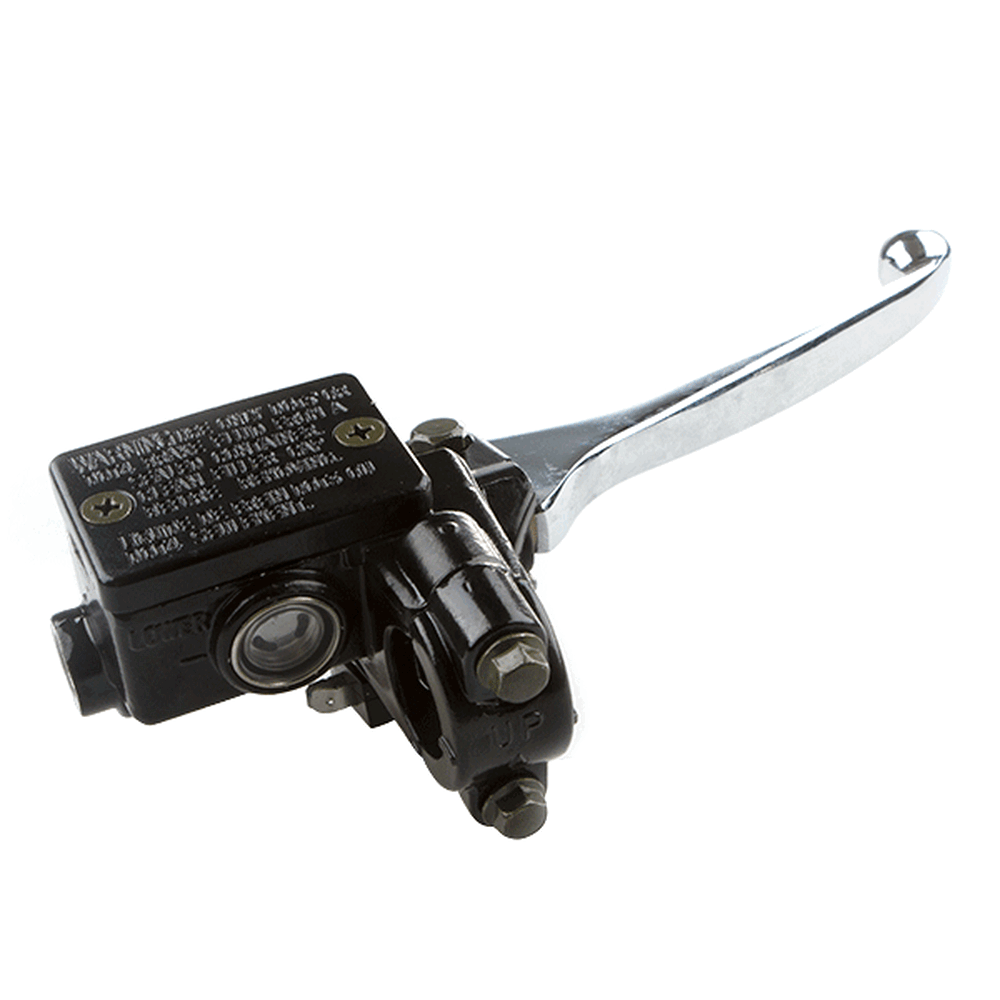 The master cylinders on both the front and the rear of the bike are basically the same – a piston that pushes brake fluid down the lines to the caliper (the slave), in turn forcing the pistons out to press the brake pads against the disc.
