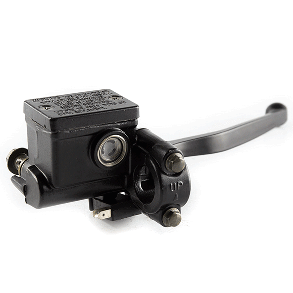The master cylinders on both the front and the rear of the bike are basically the same – a piston that pushes brake fluid down the lines to the caliper (the slave), in turn forcing the pistons out to press the brake pads against the disc.