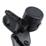 The master cylinders on both the front and the rear of the bike are basically the same – a piston that pushes brake fluid down the lines to the caliper (the slave), in turn forcing the pistons out to press the brake pads against the disc.