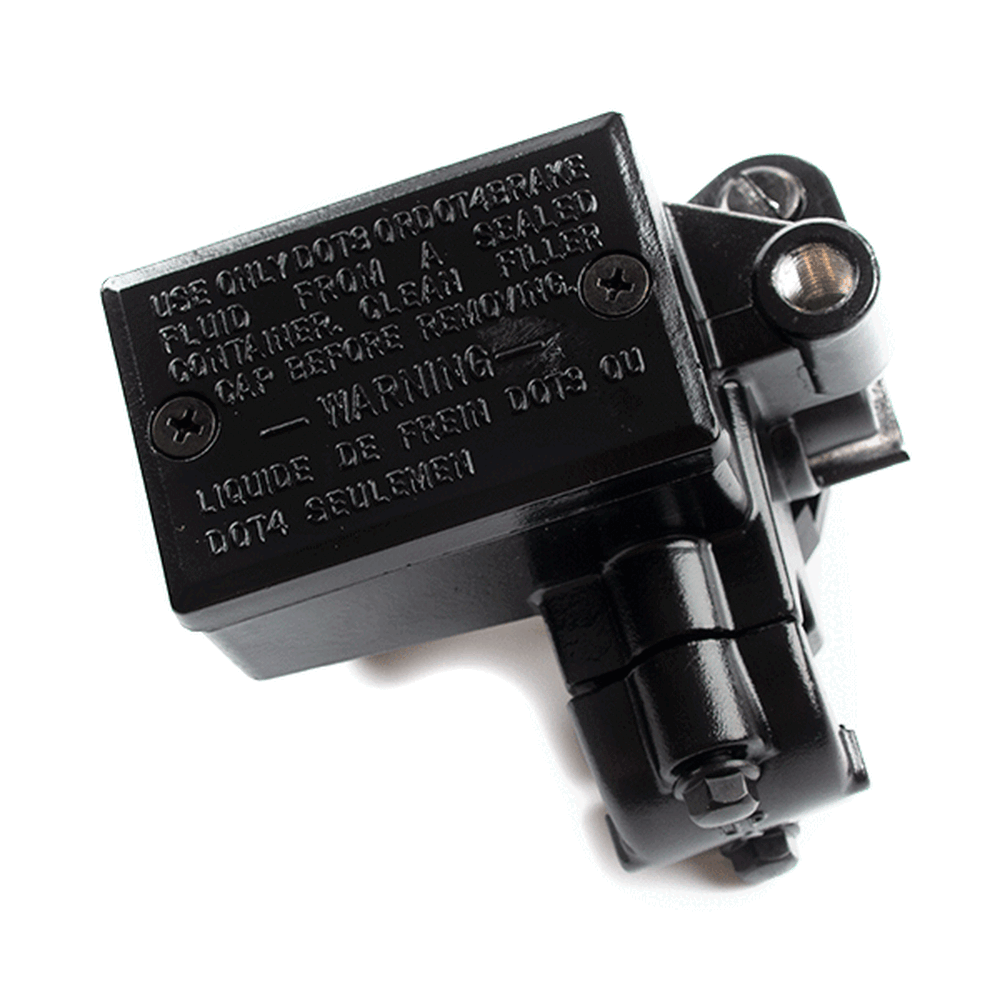 The master cylinders on both the front and the rear of the bike are basically the same – a piston that pushes brake fluid down the lines to the caliper (the slave), in turn forcing the pistons out to press the brake pads against the disc.