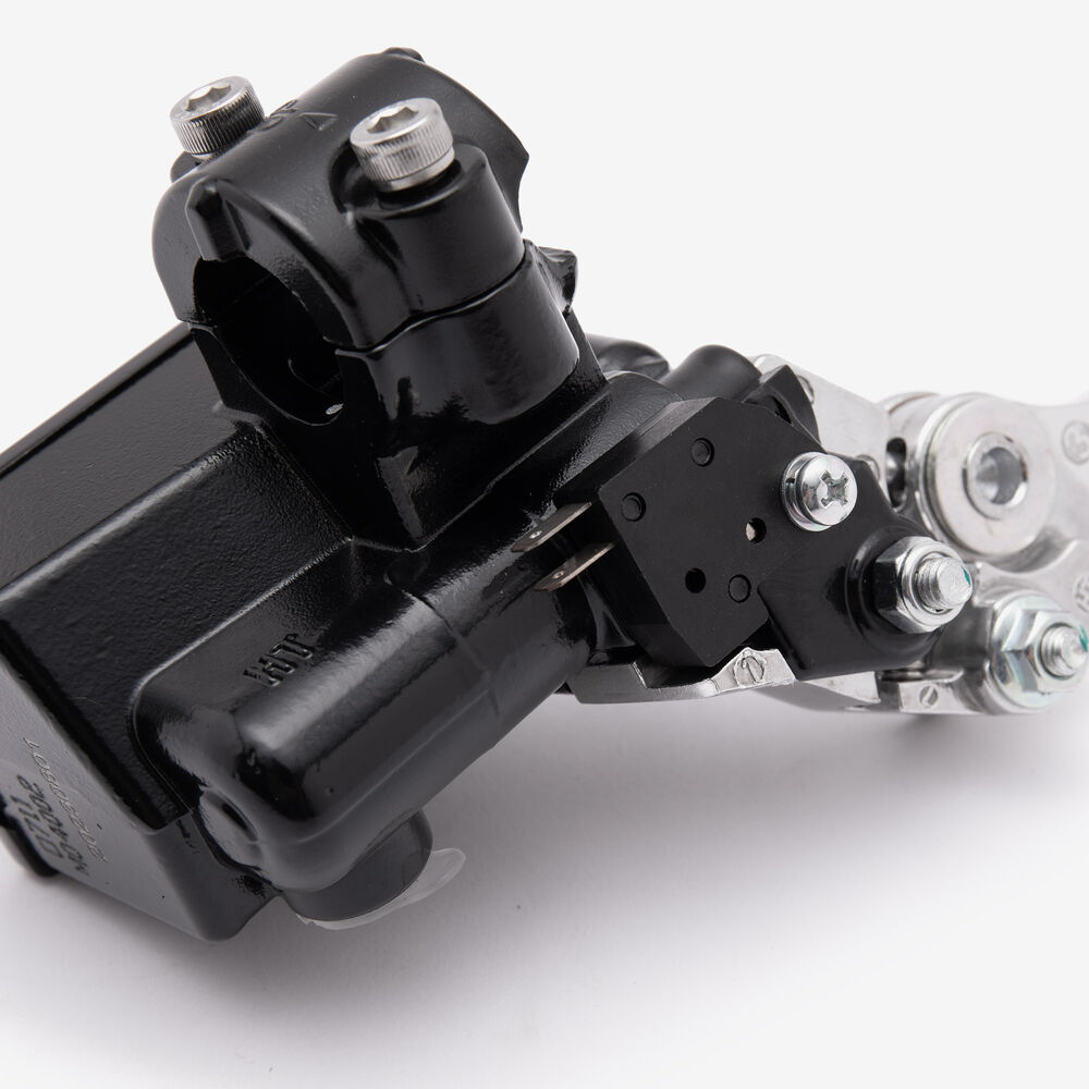 The master cylinders on both the front and the rear of the bike are basically the same – a piston that pushes brake fluid down the lines to the caliper (the slave), in turn forcing the pistons out to press the brake pads against the disc.