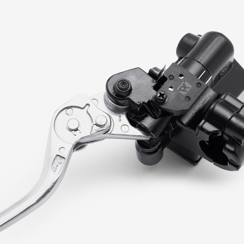 The master cylinders on both the front and the rear of the bike are basically the same – a piston that pushes brake fluid down the lines to the caliper (the slave), in turn forcing the pistons out to press the brake pads against the disc.