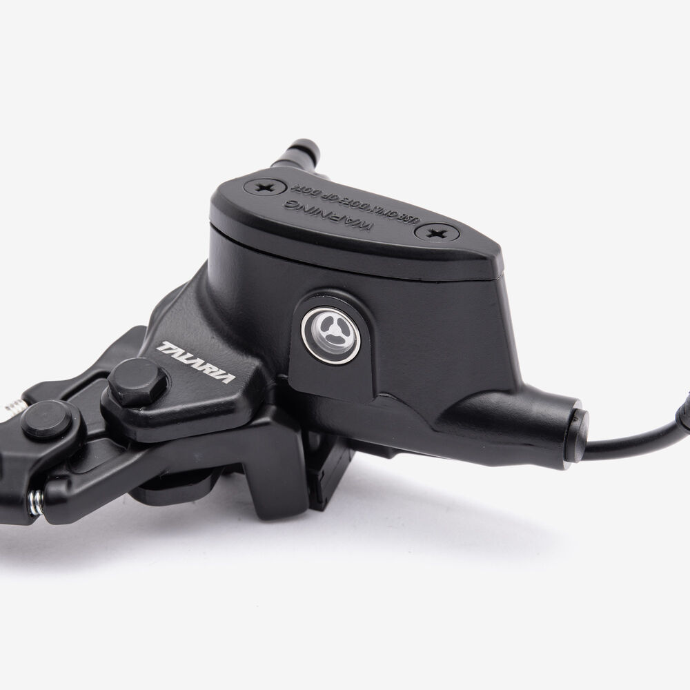 The master cylinders on both the front and the rear of the bike are basically the same – a piston that pushes brake fluid down the lines to the caliper (the slave), in turn forcing the pistons out to press the brake pads against the disc.