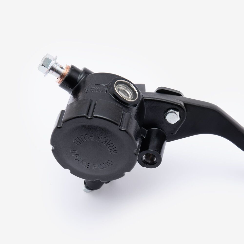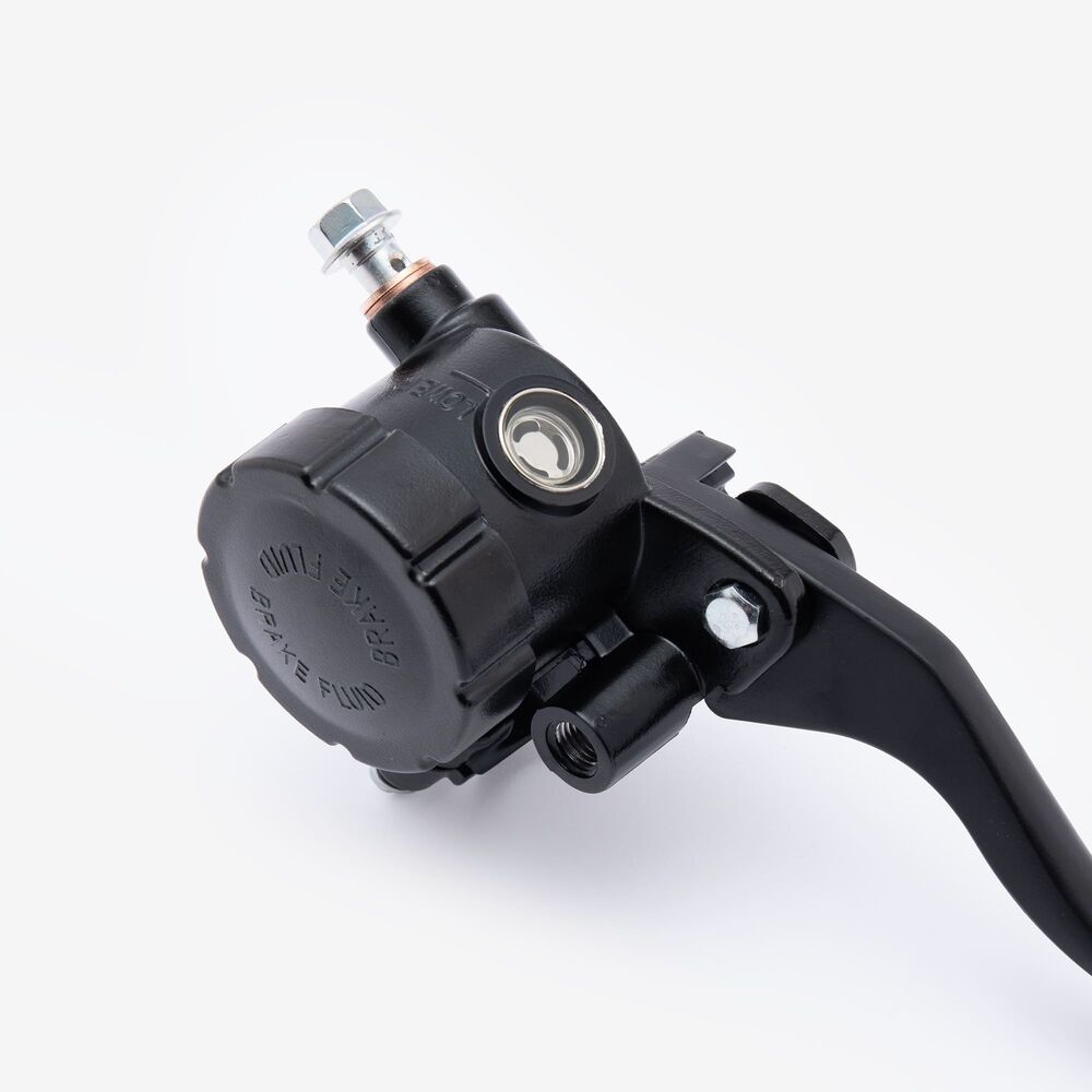The master cylinders on both the front and the rear of the bike are basically the same – a piston that pushes brake fluid down the lines to the caliper (the slave), in turn forcing the pistons out to press the brake pads against the disc.