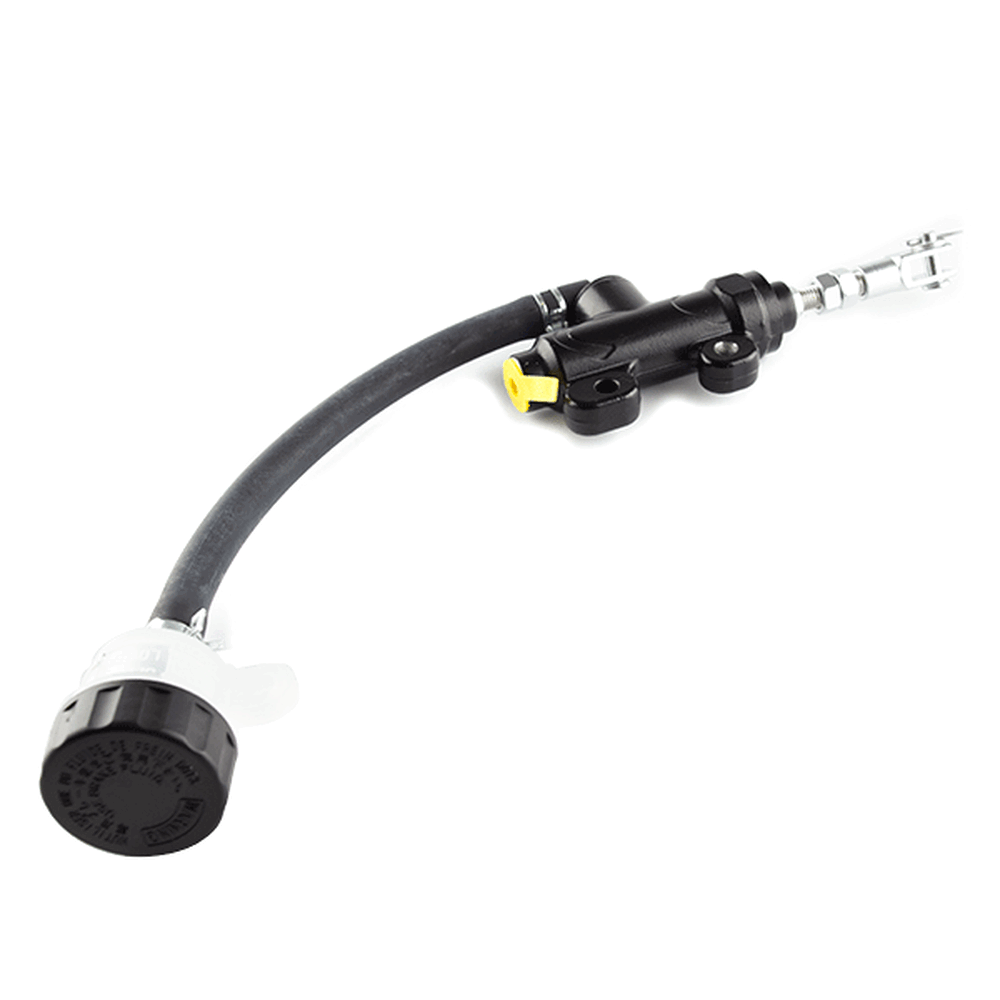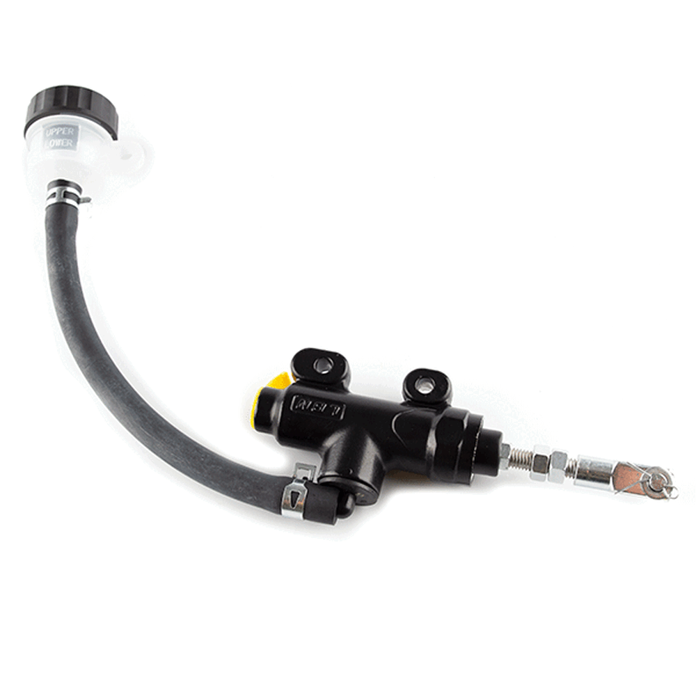 The master cylinders on both the front and the rear of the bike are basically the same – a piston that pushes brake fluid down the lines to the caliper (the slave), in turn forcing the pistons out to press the brake pads against the disc.