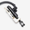 The master cylinders on both the front and the rear of the bike are basically the same – a piston that pushes brake fluid down the lines to the caliper (the slave), in turn forcing the pistons out to press the brake pads against the disc.