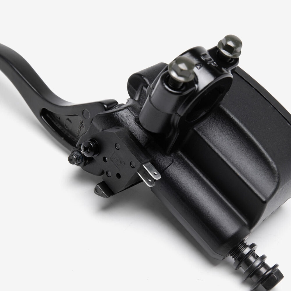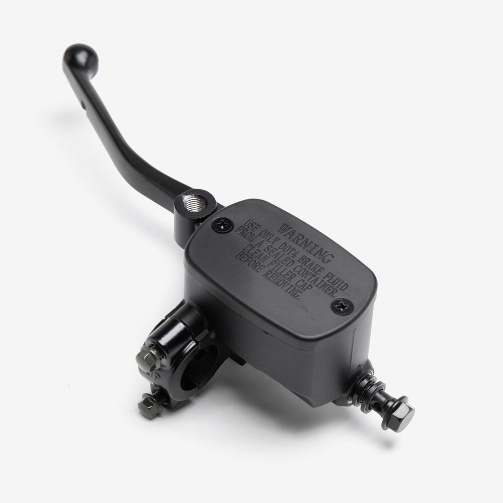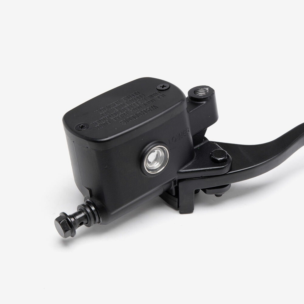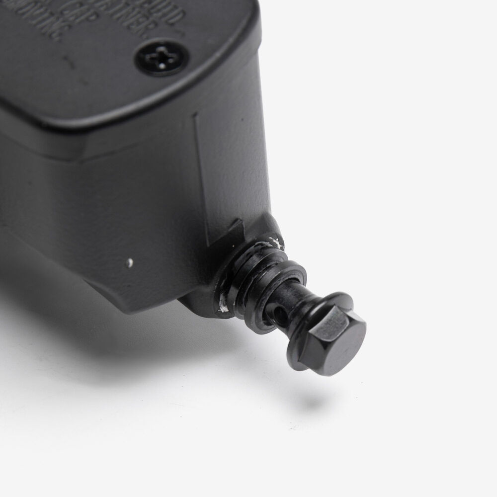 The master cylinders on both the front and the rear of the bike are basically the same – a piston that pushes brake fluid down the lines to the caliper (the slave), in turn forcing the pistons out to press the brake pads against the disc.