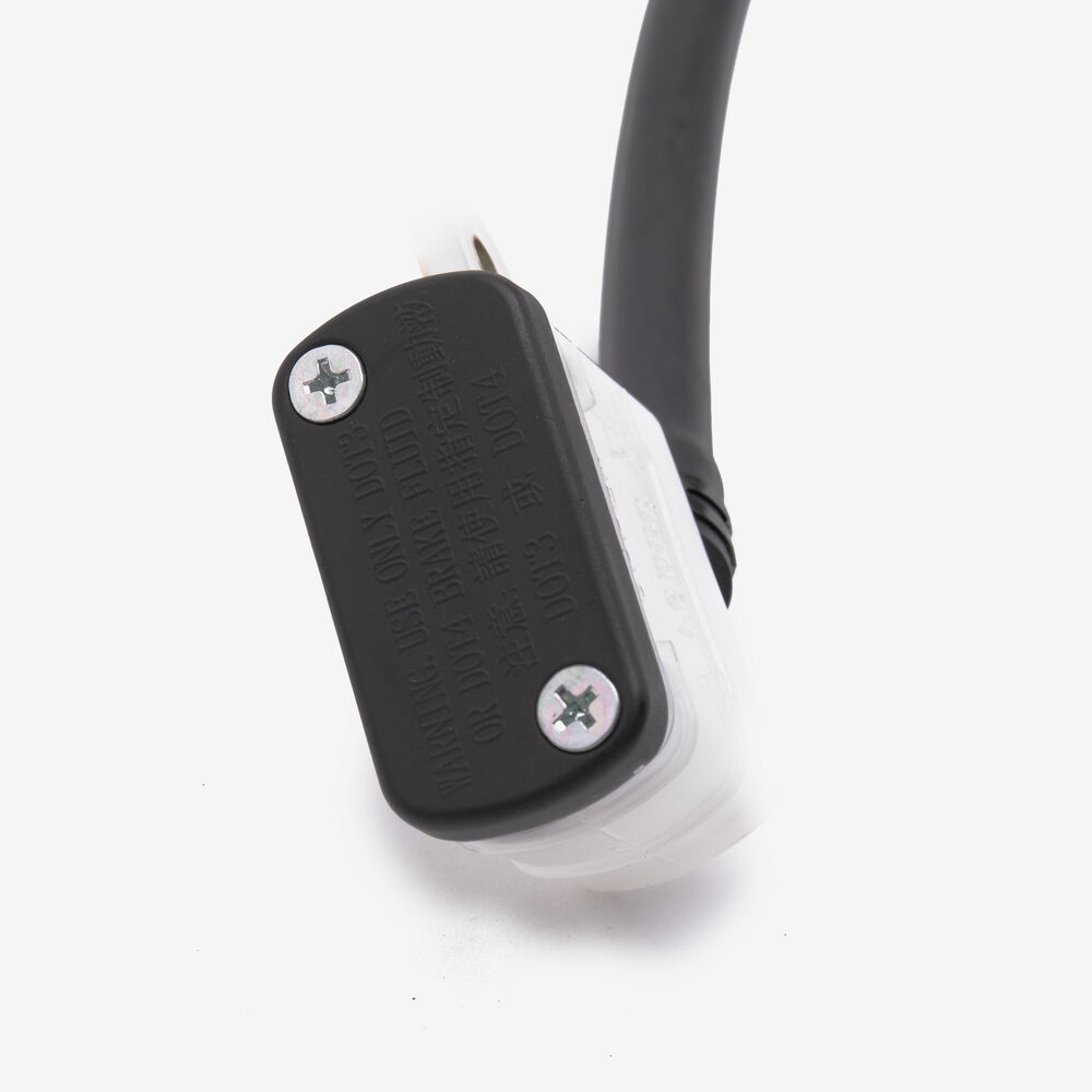 The master cylinders on both the front and the rear of the bike are basically the same – a piston that pushes brake fluid down the lines to the caliper (the slave), in turn forcing the pistons out to press the brake pads against the disc.
