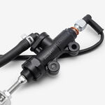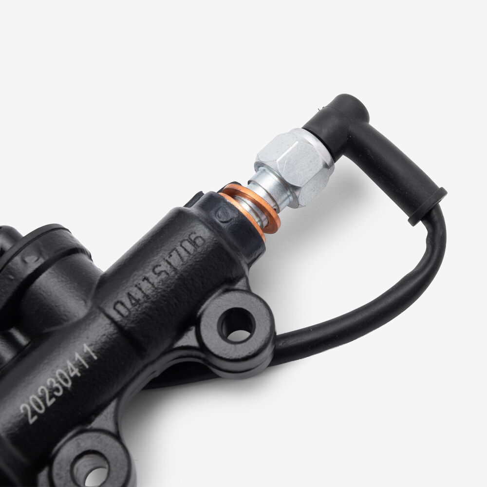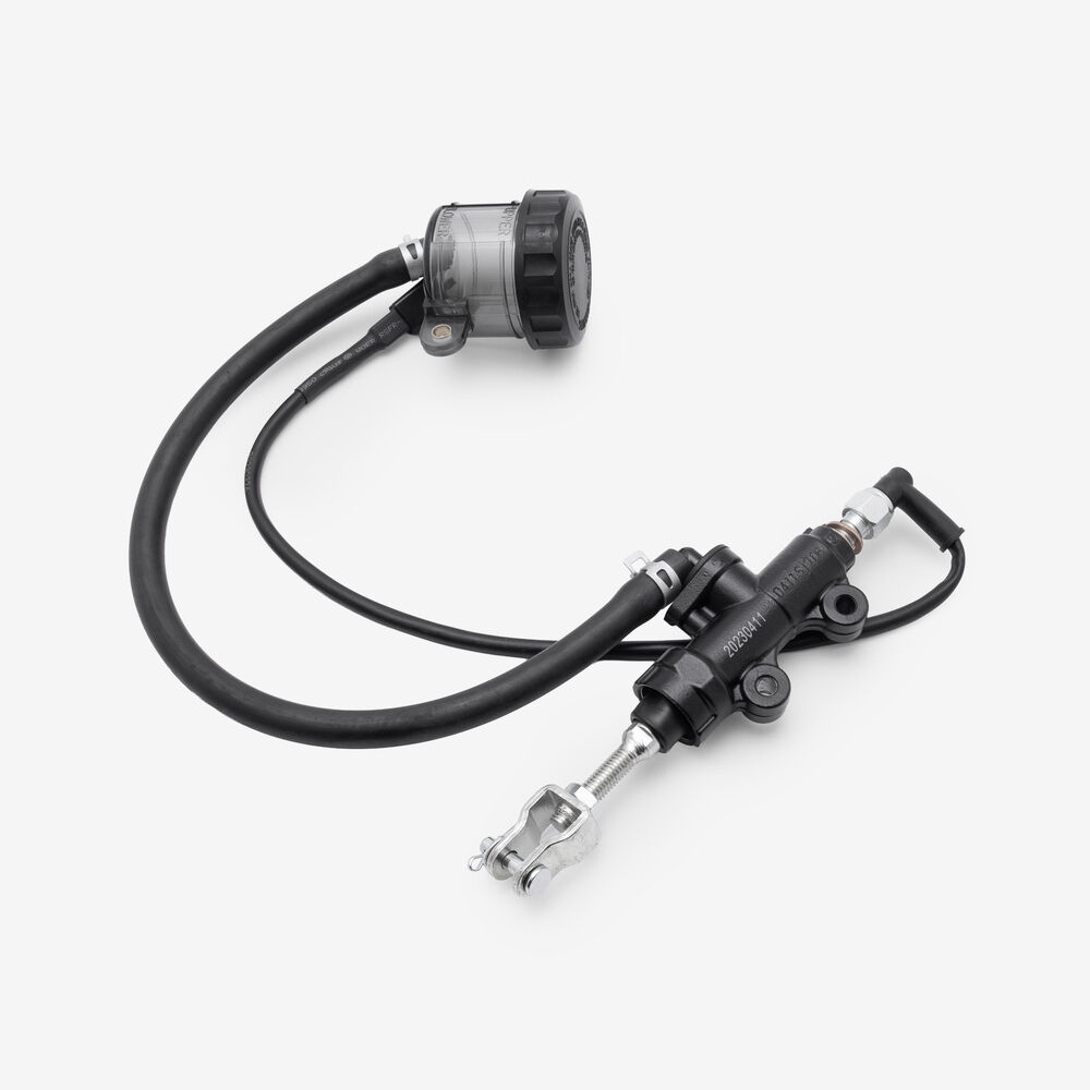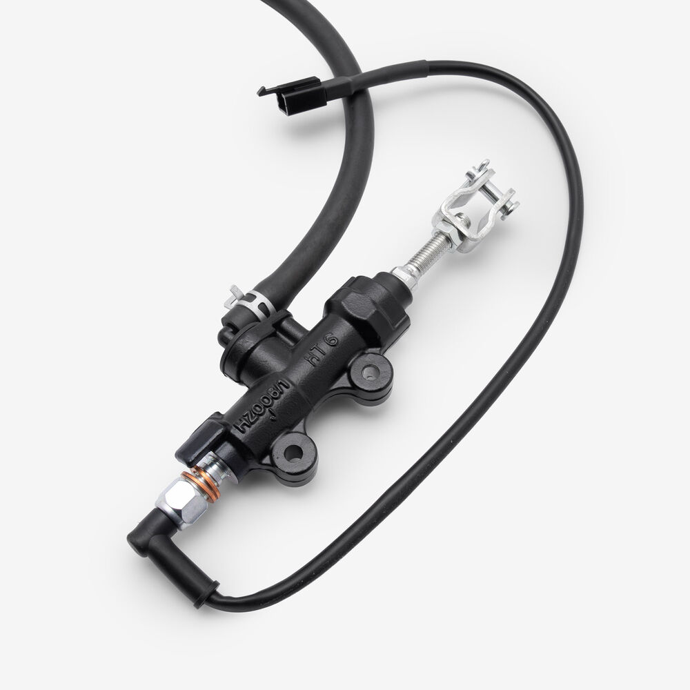 The master cylinders on both the front and the rear of the bike are basically the same – a piston that pushes brake fluid down the lines to the caliper (the slave), in turn forcing the pistons out to press the brake pads against the disc.
