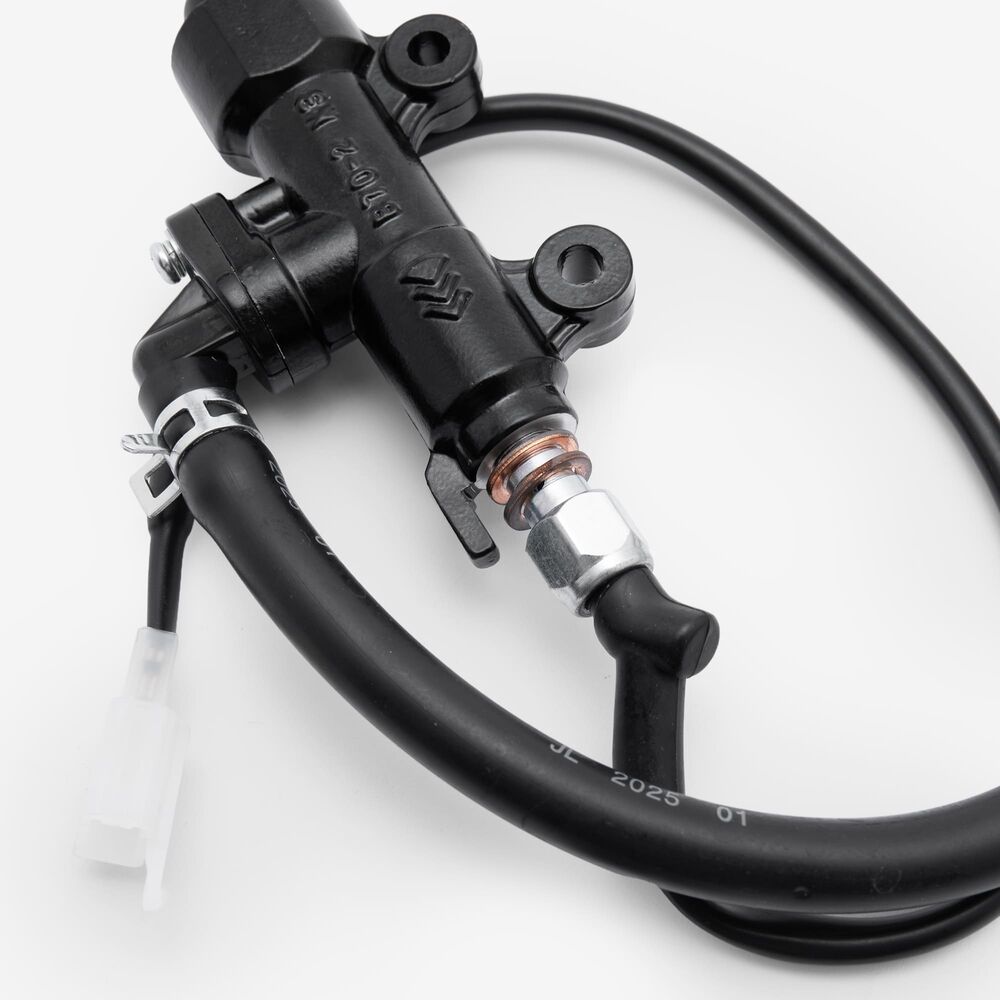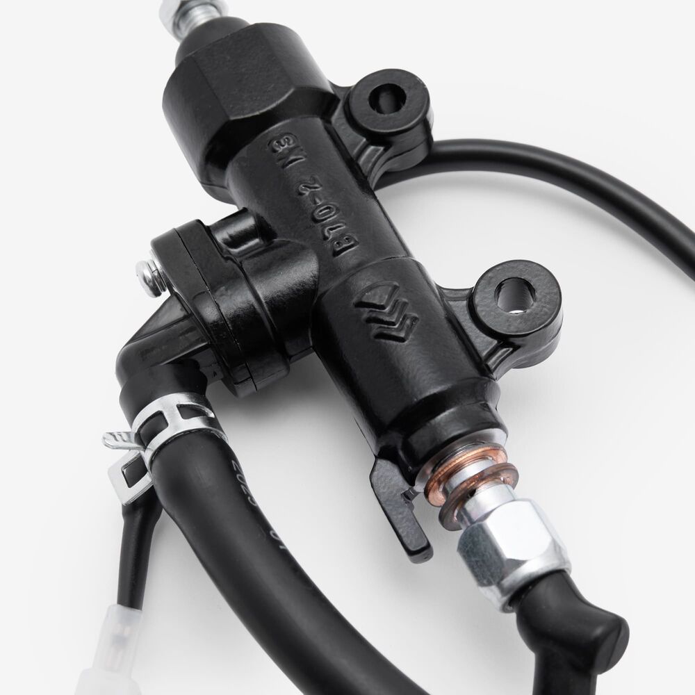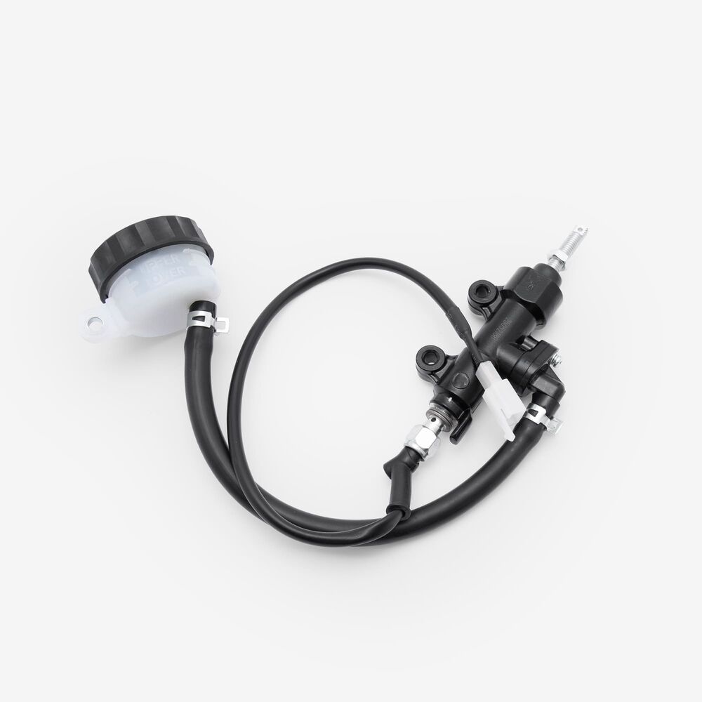 The master cylinders on both the front and the rear of the bike are basically the same – a piston that pushes brake fluid down the lines to the caliper (the slave), in turn forcing the pistons out to press the brake pads against the disc.