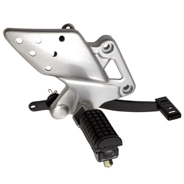 The rear brake pedal in a motorcycle is a foot-operated lever that controls the rear brake system. When pressed, it activates the rear brake caliper or drum, applying braking force to the rear wheel to slow down or stop the motorcycle, enhancing overall control and safety.