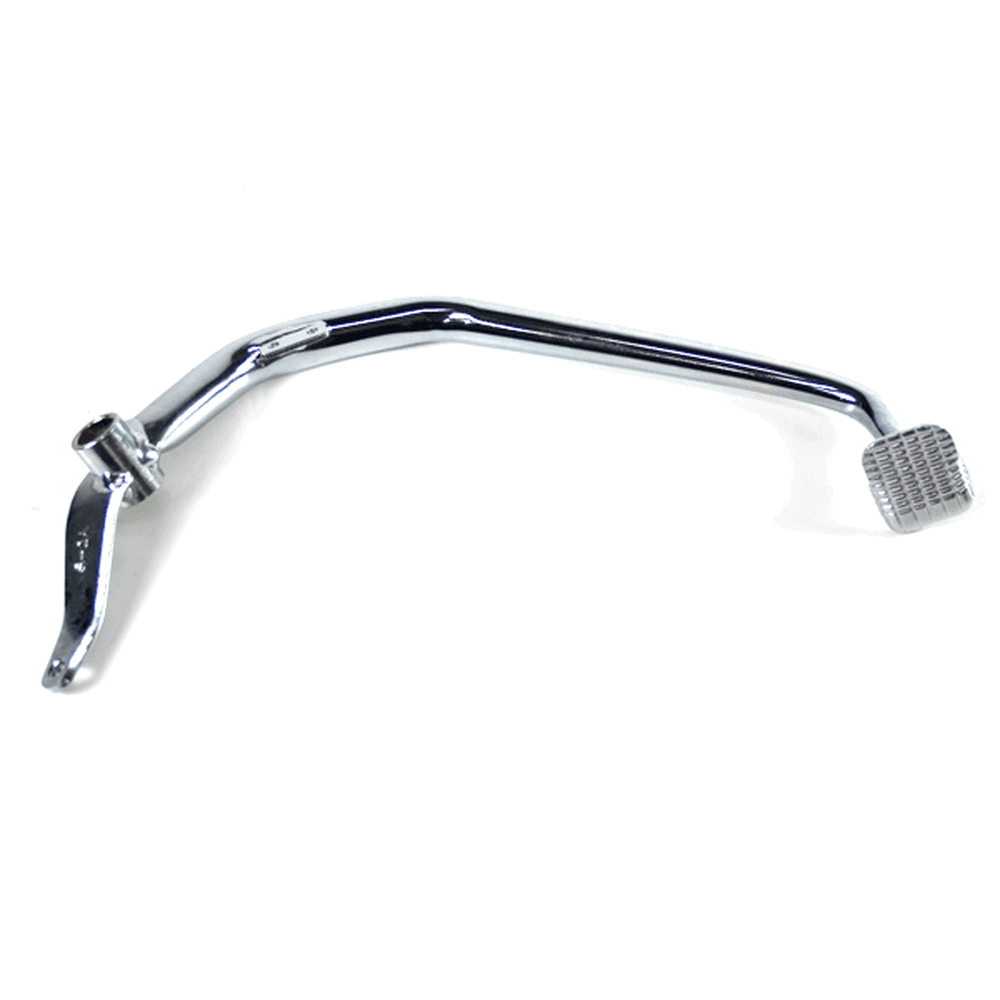 The rear brake pedal in a motorcycle is a foot-operated lever that controls the rear brake system. When pressed, it activates the rear brake caliper or drum, applying braking force to the rear wheel to slow down or stop the motorcycle, enhancing overall control and safety.