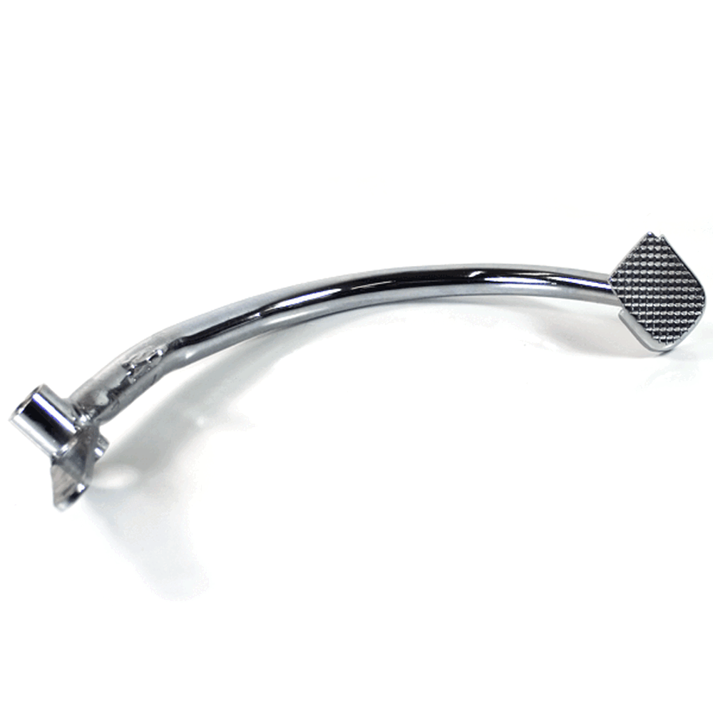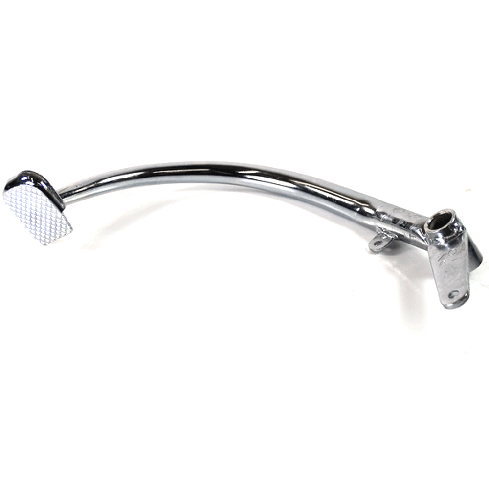 The rear brake pedal in a motorcycle is a foot-operated lever that controls the rear brake system. When pressed, it activates the rear brake caliper or drum, applying braking force to the rear wheel to slow down or stop the motorcycle, enhancing overall control and safety.