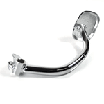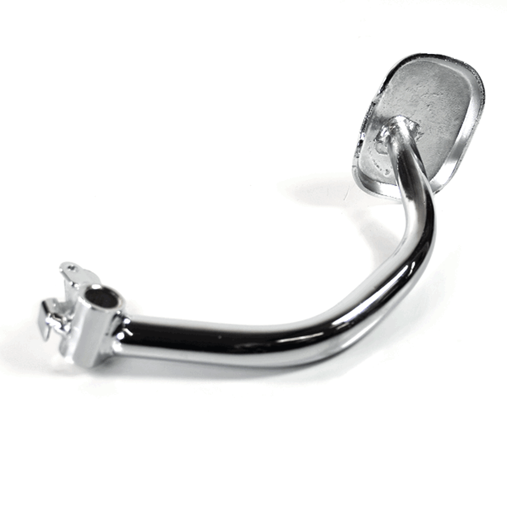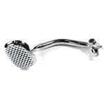 The rear brake pedal in a motorcycle is a foot-operated lever that controls the rear brake system. When pressed, it activates the rear brake caliper or drum, applying braking force to the rear wheel to slow down or stop the motorcycle, enhancing overall control and safety.