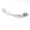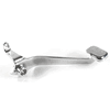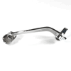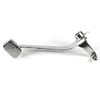 The rear brake pedal in a motorcycle is a foot-operated lever that controls the rear brake system. When pressed, it activates the rear brake caliper or drum, applying braking force to the rear wheel to slow down or stop the motorcycle, enhancing overall control and safety.