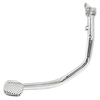 The rear brake pedal in a motorcycle is a foot-operated lever that controls the rear brake system. When pressed, it activates the rear brake caliper or drum, applying braking force to the rear wheel to slow down or stop the motorcycle, enhancing overall control and safety.