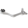 The rear brake pedal in a motorcycle is a foot-operated lever that controls the rear brake system. When pressed, it activates the rear brake caliper or drum, applying braking force to the rear wheel to slow down or stop the motorcycle, enhancing overall control and safety.
