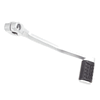 The rear brake pedal in a motorcycle is a foot-operated lever that controls the rear brake system. When pressed, it activates the rear brake caliper or drum, applying braking force to the rear wheel to slow down or stop the motorcycle, enhancing overall control and safety.
