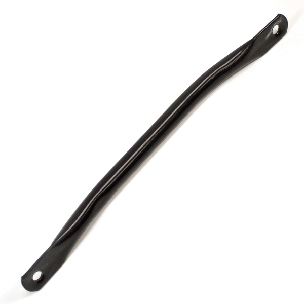 The rear brake hub retaining bar in a motorcycle secures the rear brake hub to the wheel assembly. It ensures proper alignment and stability of the brake hub, allowing for effective braking performance and maintaining the integrity of the rear braking system.