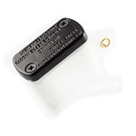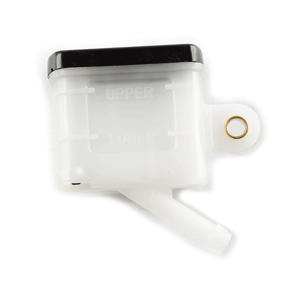 The brake fluid reservoir in a motorcycle is a container that stores the brake fluid used in the hydraulic braking system. It ensures a consistent supply of fluid to the brake master cylinder, allowing the brakes to function properly. The reservoir is typically transparent or has a viewing window to monitor the brake fluid level and condition, ensuring safe and efficient braking performance.