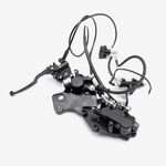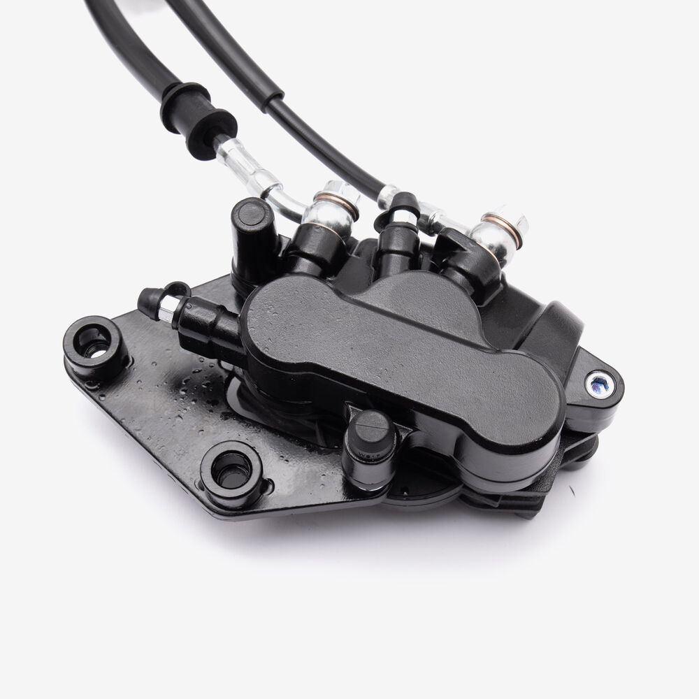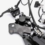 Modern motorcycle brakes work by transferring movement and force at the lever through an incompressible liquid to the caliper pistons, which then press the brake pads against the disc.