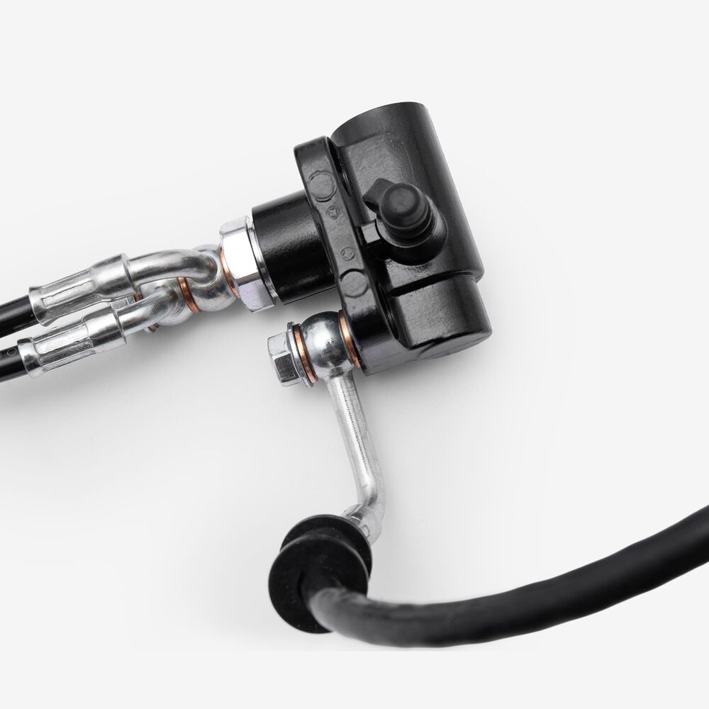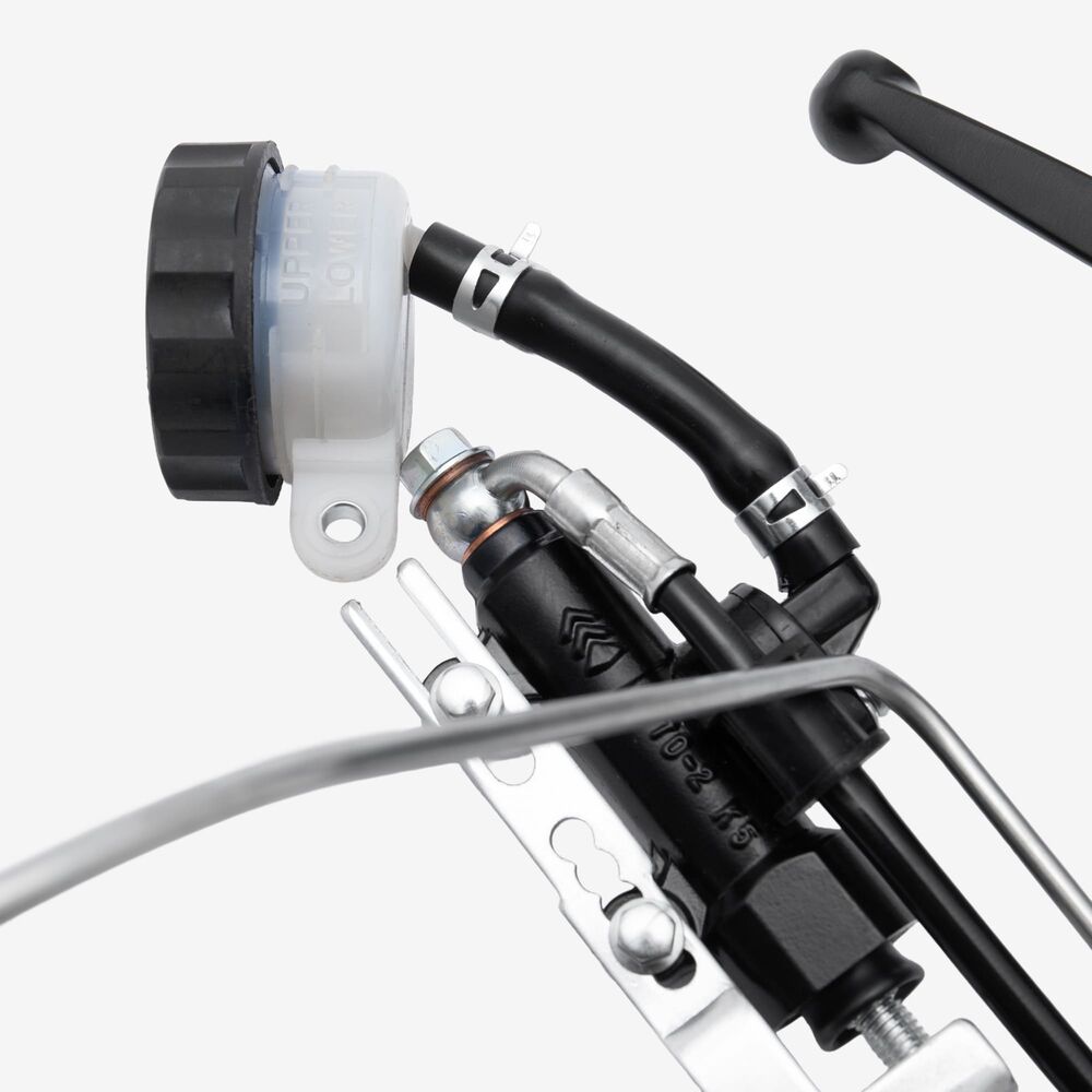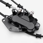 Modern motorcycle brakes work by transferring movement and force at the lever through an incompressible liquid to the caliper pistons, which then press the brake pads against the disc.