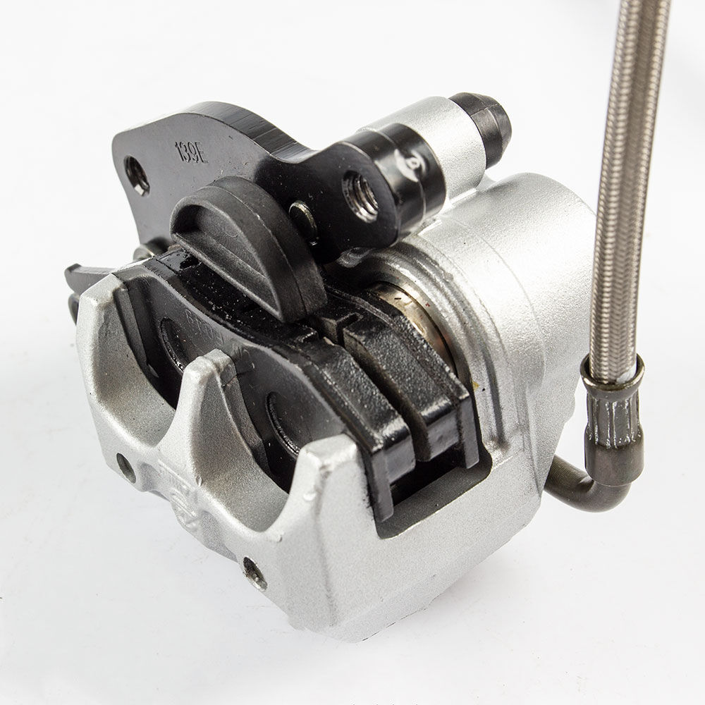 Modern motorcycle brakes work by transferring movement and force at the lever through an incompressible liquid to the caliper pistons, which then press the brake pads against the disc.