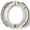 Brake shoes are components of the drum brake assembly. They are forced to press against the inner surface of the brake drum. The friction produced between the shoes and the drum works to reduce speed and stop the motorcycle.