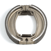 Brake shoes are components of the drum brake assembly. They are forced to press against the inner surface of the brake drum. The friction produced between the shoes and the drum works to reduce speed and stop the motorcycle.
