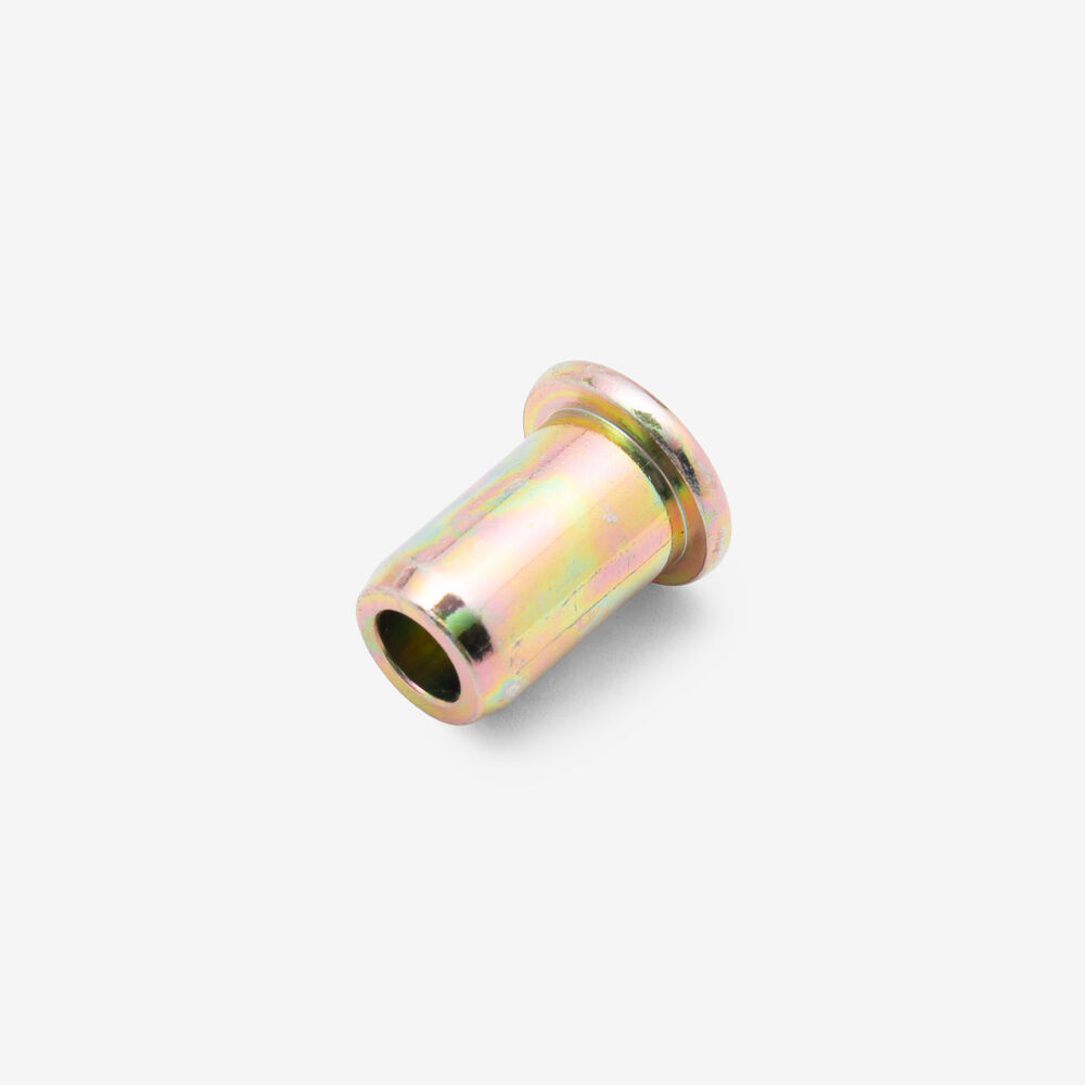 A bush in a motorcycle is a cylindrical component used to reduce friction and provide a bearing surface for rotating or moving parts. It serves as a spacer or sleeve within the engine, suspension, or other assemblies, ensuring smooth operation and reducing wear between components.