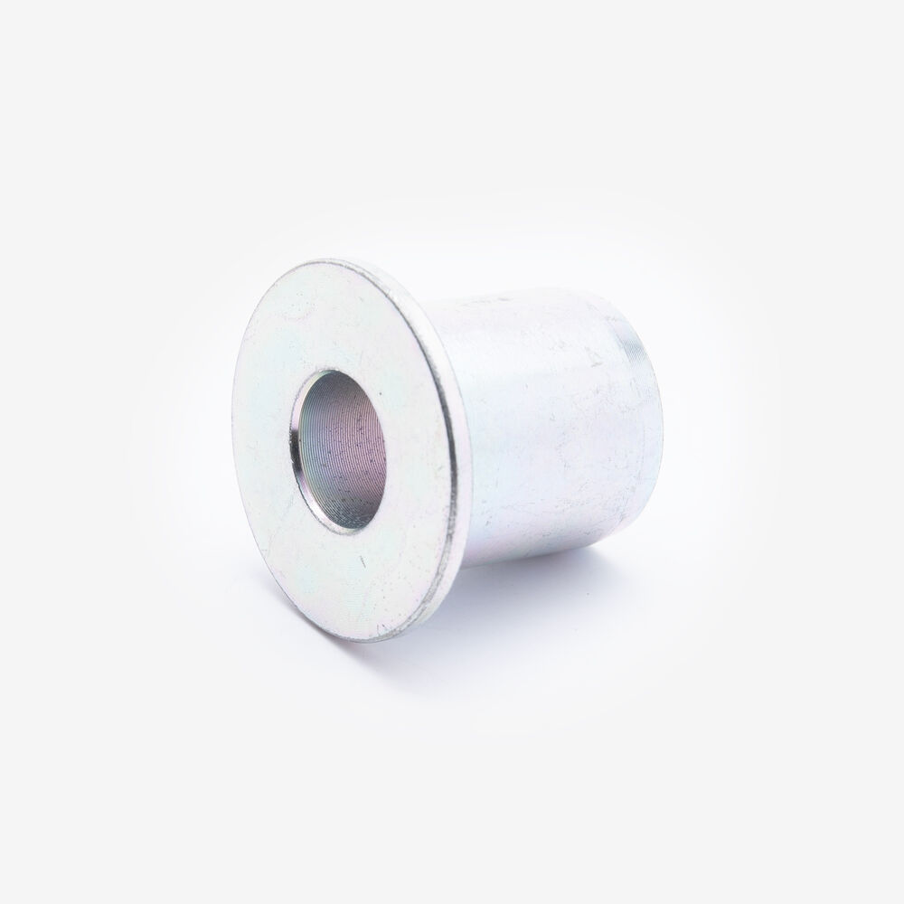 A bush in a motorcycle is a cylindrical component used to reduce friction and provide a bearing surface for rotating or moving parts. It serves as a spacer or sleeve within the engine, suspension, or other assemblies, ensuring smooth operation and reducing wear between components.