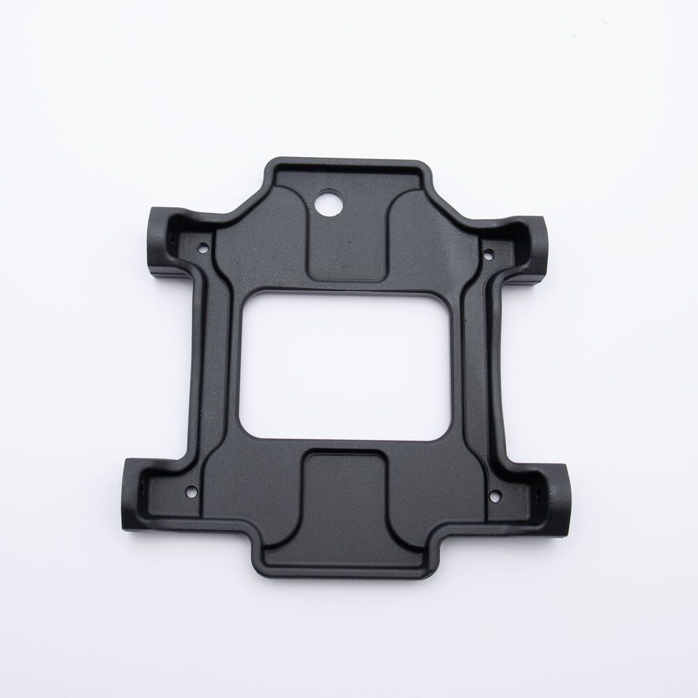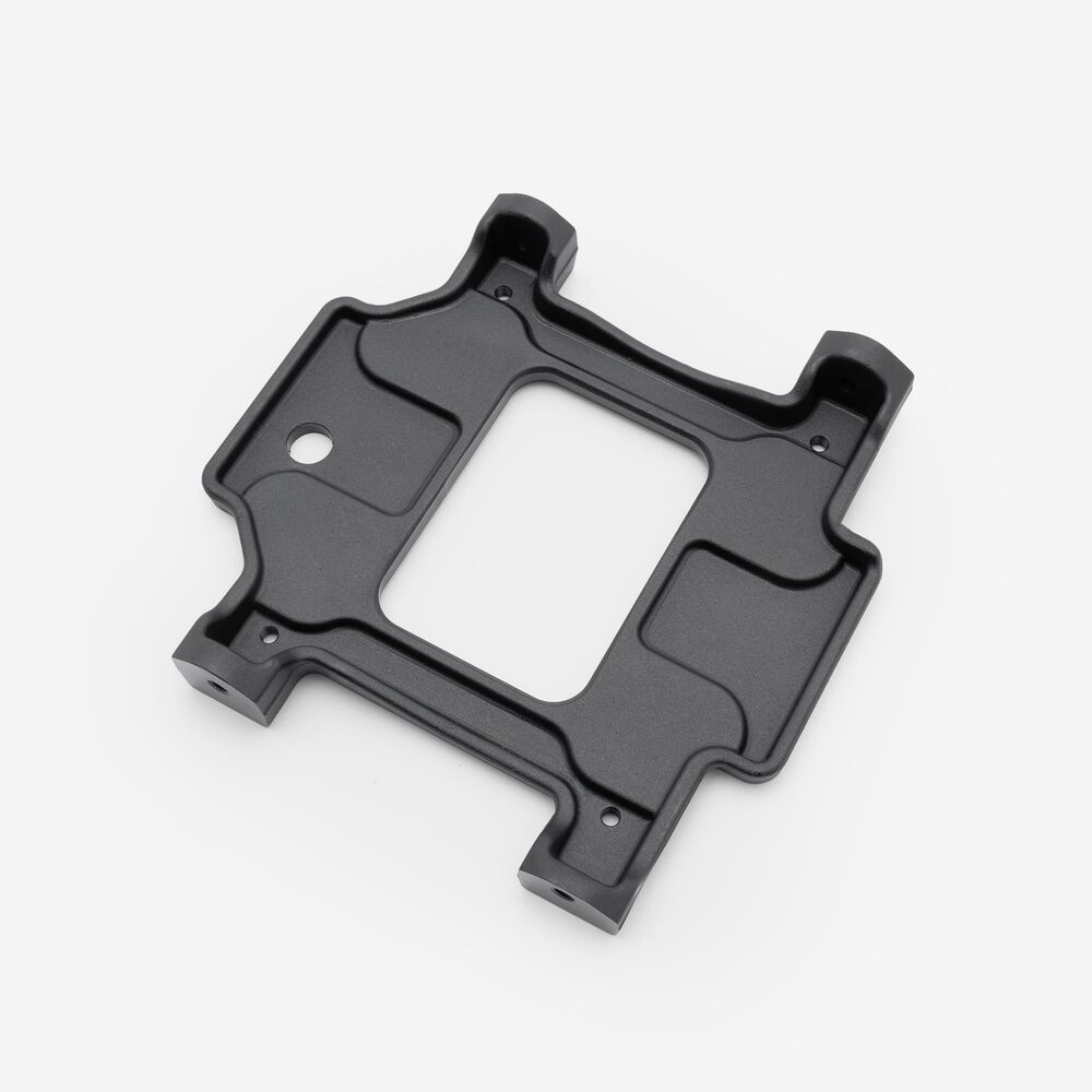The battery bracket in a motorcycle is a mounting component that secures the battery within its designated compartment. It ensures the battery remains stable and properly aligned, preventing movement and potential damage while riding, and facilitating easy installation and removal.