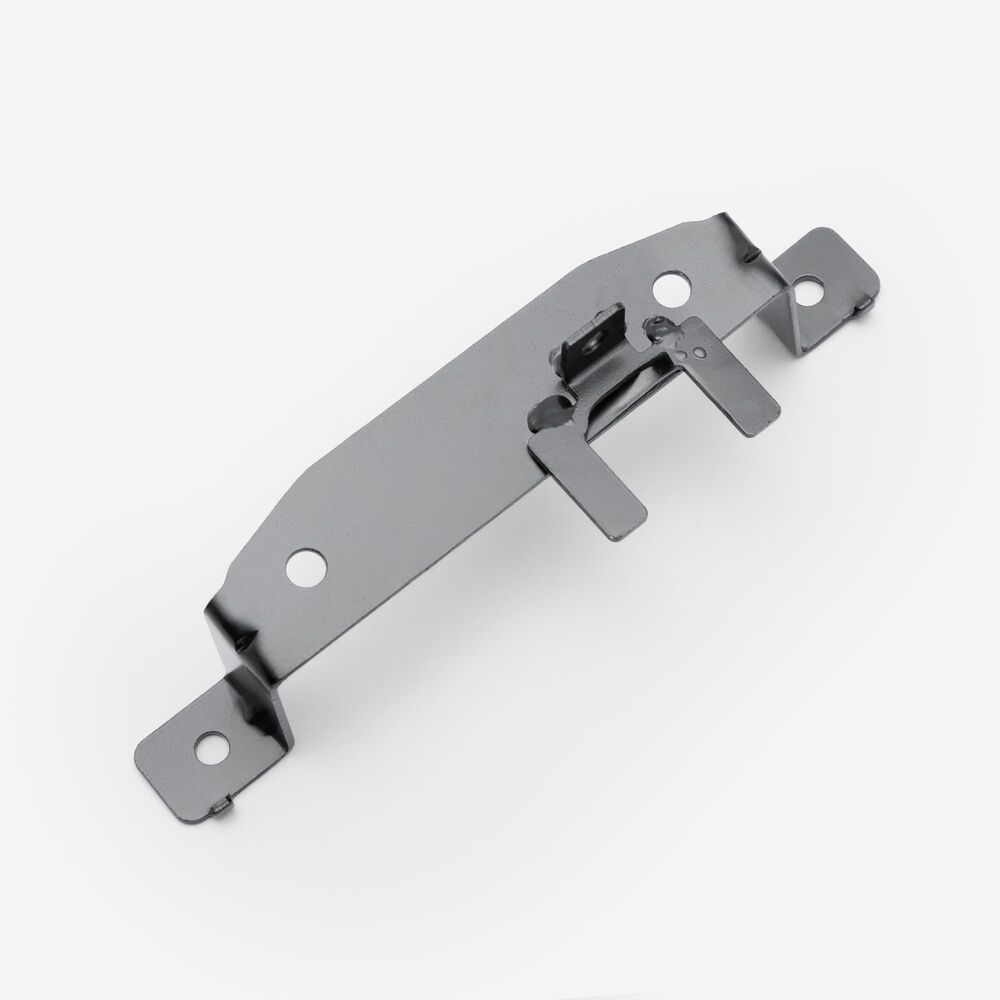 The battery bracket in a motorcycle is a mounting component that secures the battery within its designated compartment. It ensures the battery remains stable and properly aligned, preventing movement and potential damage while riding, and facilitating easy installation and removal.
