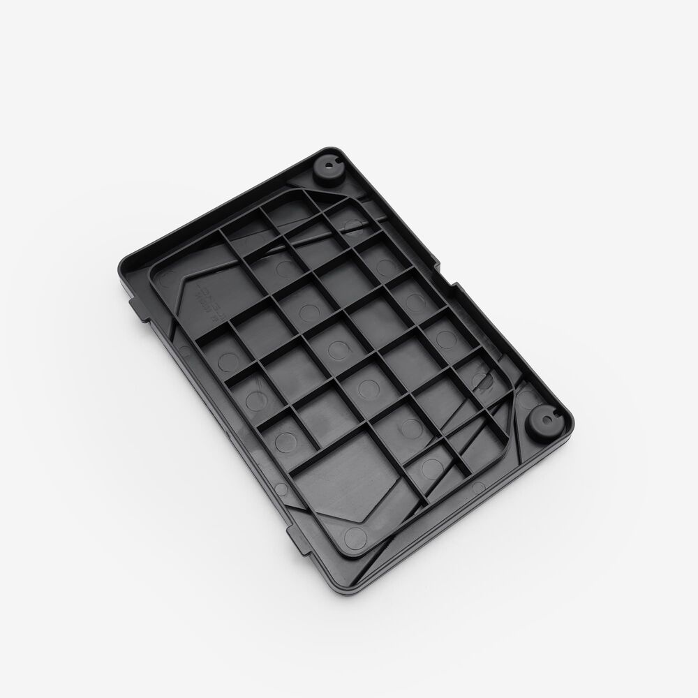 The battery box in a motorcycle is a protective enclosure designed to securely hold and support the battery. It safeguards the battery from physical damage, vibration, and environmental factors, while also ensuring proper alignment and easy access for maintenance or replacement.