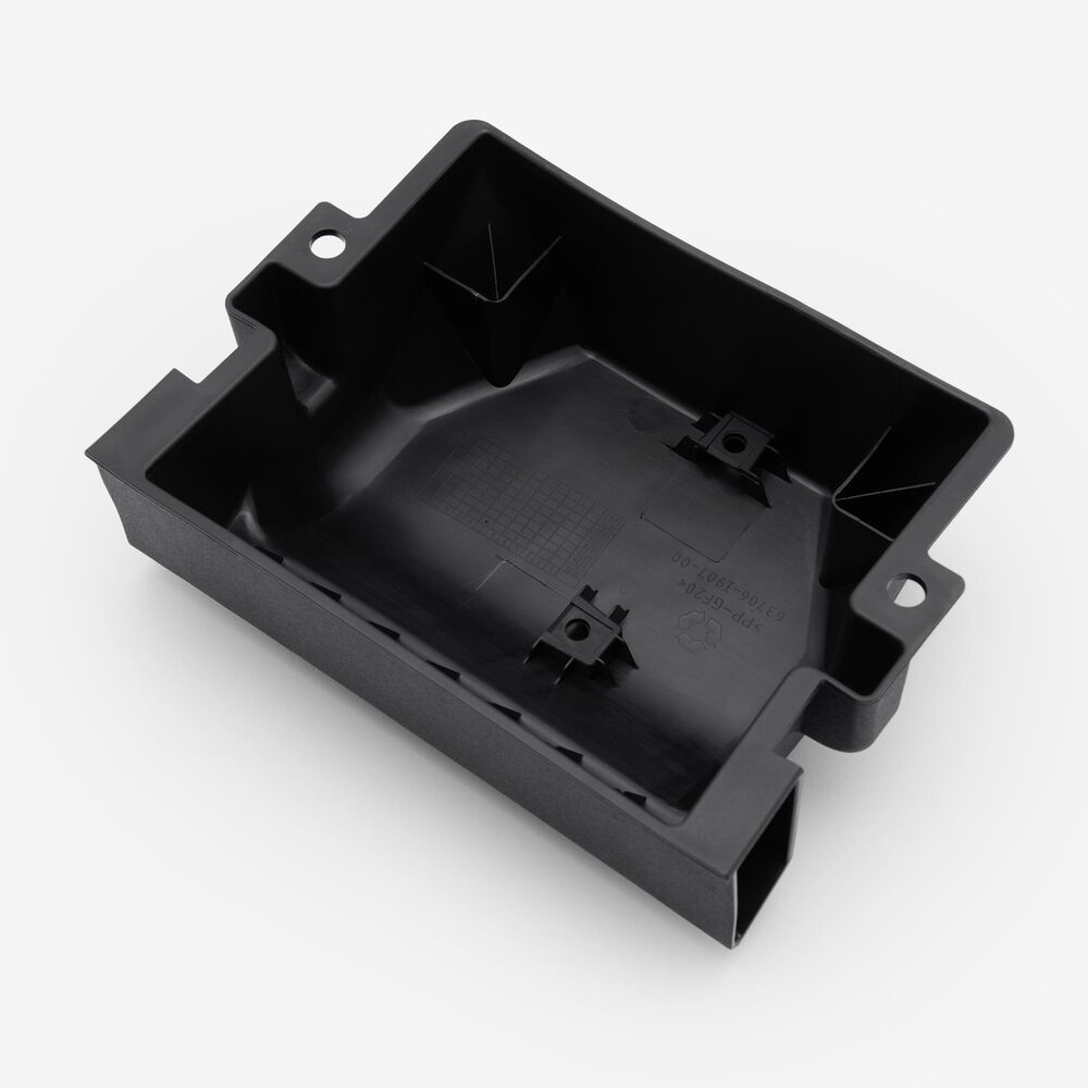 The battery box in a motorcycle is a protective enclosure designed to securely hold and support the battery. It safeguards the battery from physical damage, vibration, and environmental factors, while also ensuring proper alignment and easy access for maintenance or replacement.
