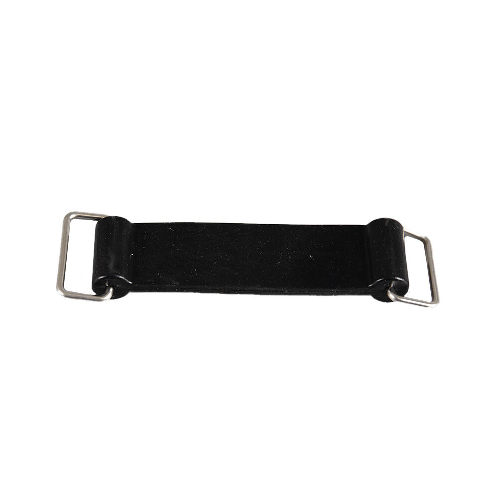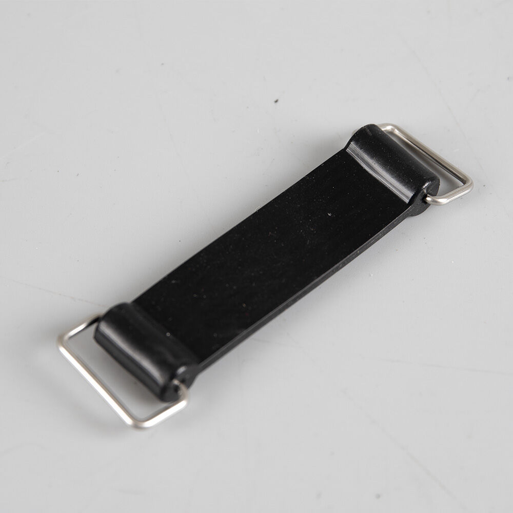 A battery strap in a motorcycle is a fastening device used to secure the motorcycle battery in place within its compartment. It prevents the battery from shifting or moving, which can help avoid damage to the battery terminals and ensure reliable electrical connections.