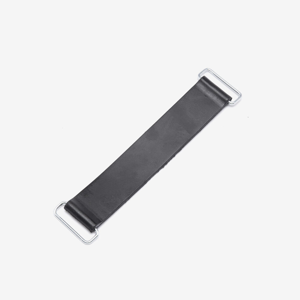 A battery strap in a motorcycle is a fastening device used to secure the motorcycle battery in place within its compartment. It prevents the battery from shifting or moving, which can help avoid damage to the battery terminals and ensure reliable electrical connections.